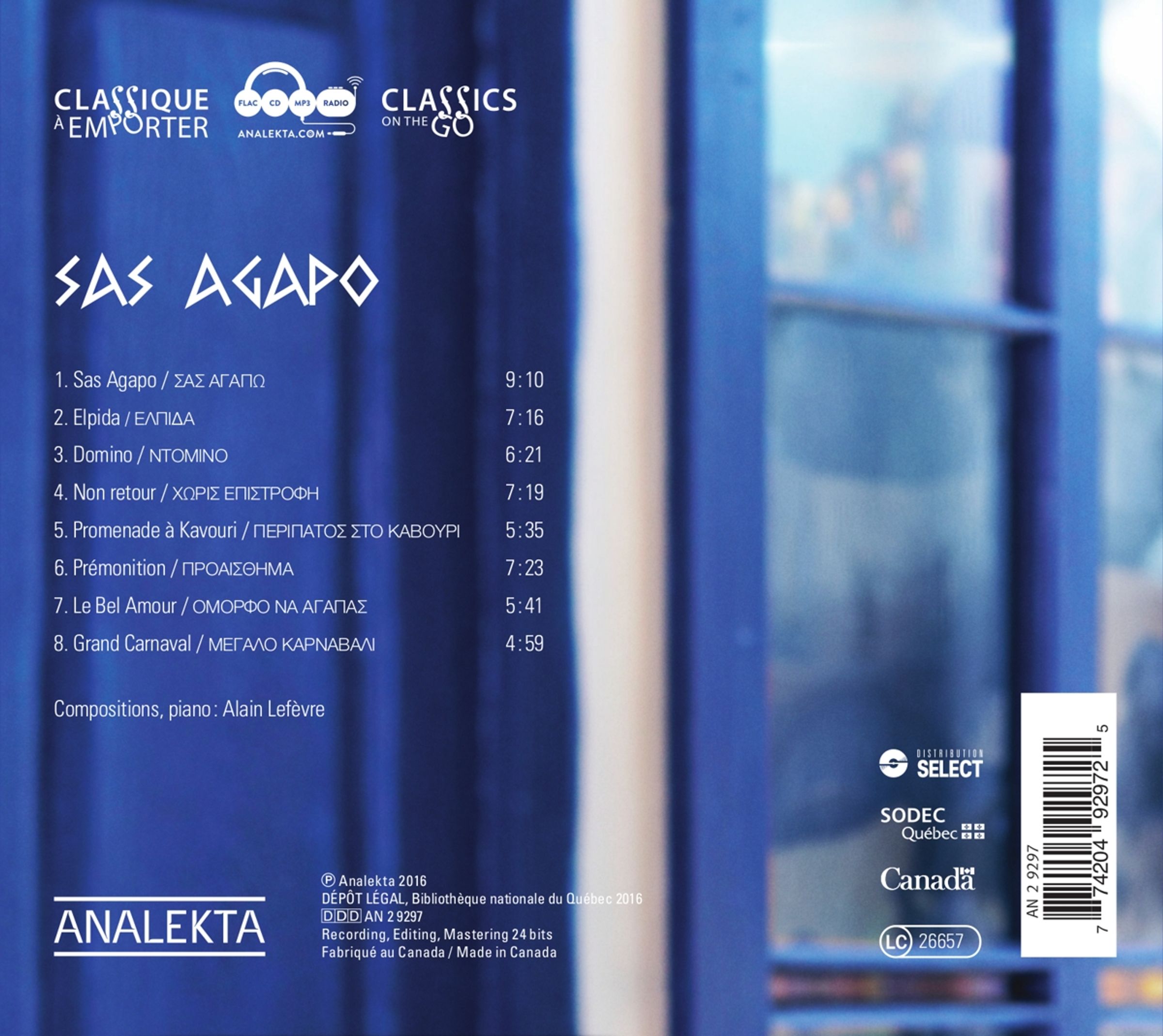 Sas Agapo; Elpida; Domino; Non retour; Promenade a Kavouri, Premonition; Le Bel Amour; Grand Carnaval