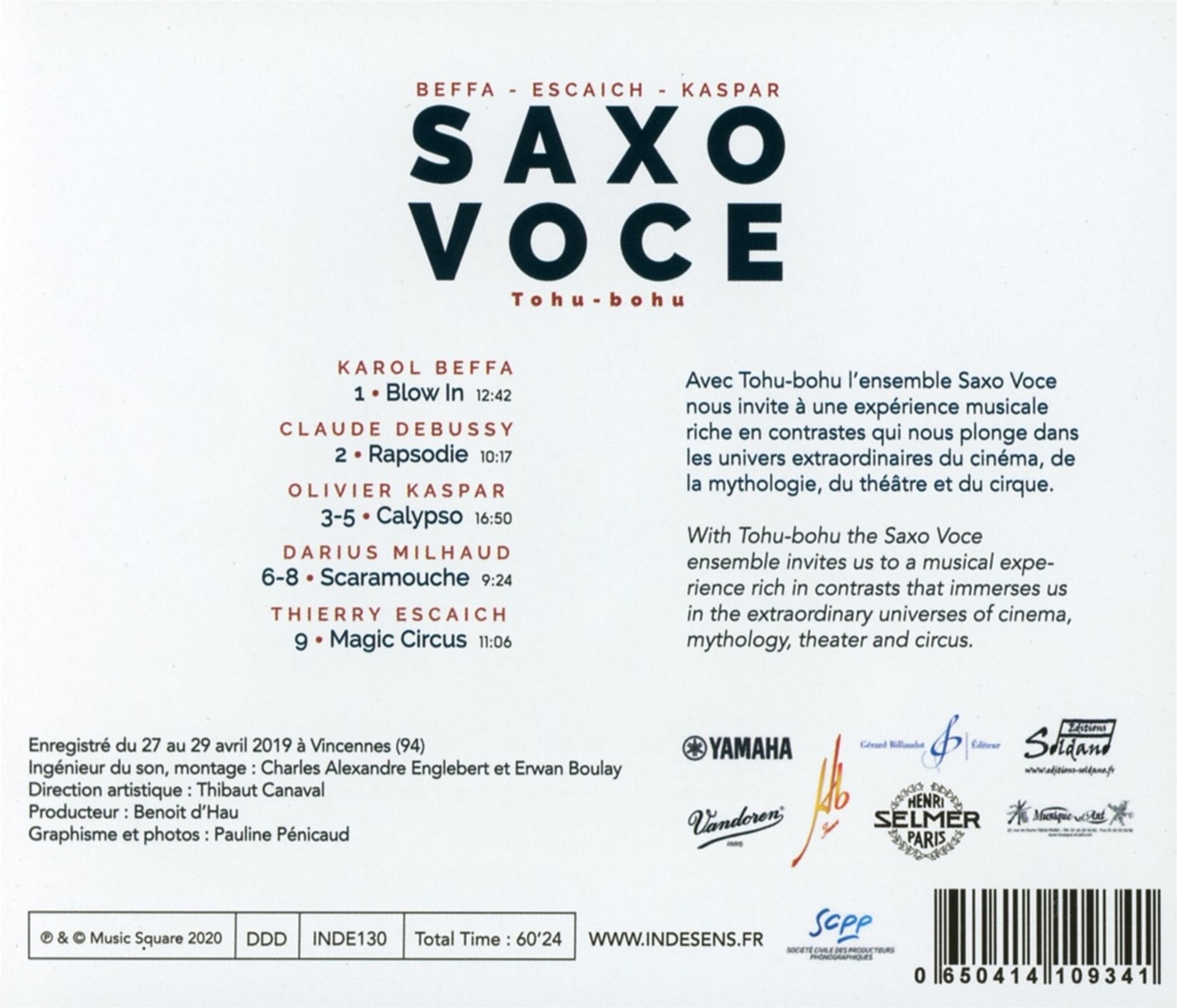 Mit Tohu-Bohu lädt das Ensemble SaxoVoce zu einer ganz eigenen, sehr kontrastreichen musikalischen Erfahrung ein und entführt die Hörer in die besonderen Universen des Kinos, der Mythologie, des Theaters und des Zirkus.