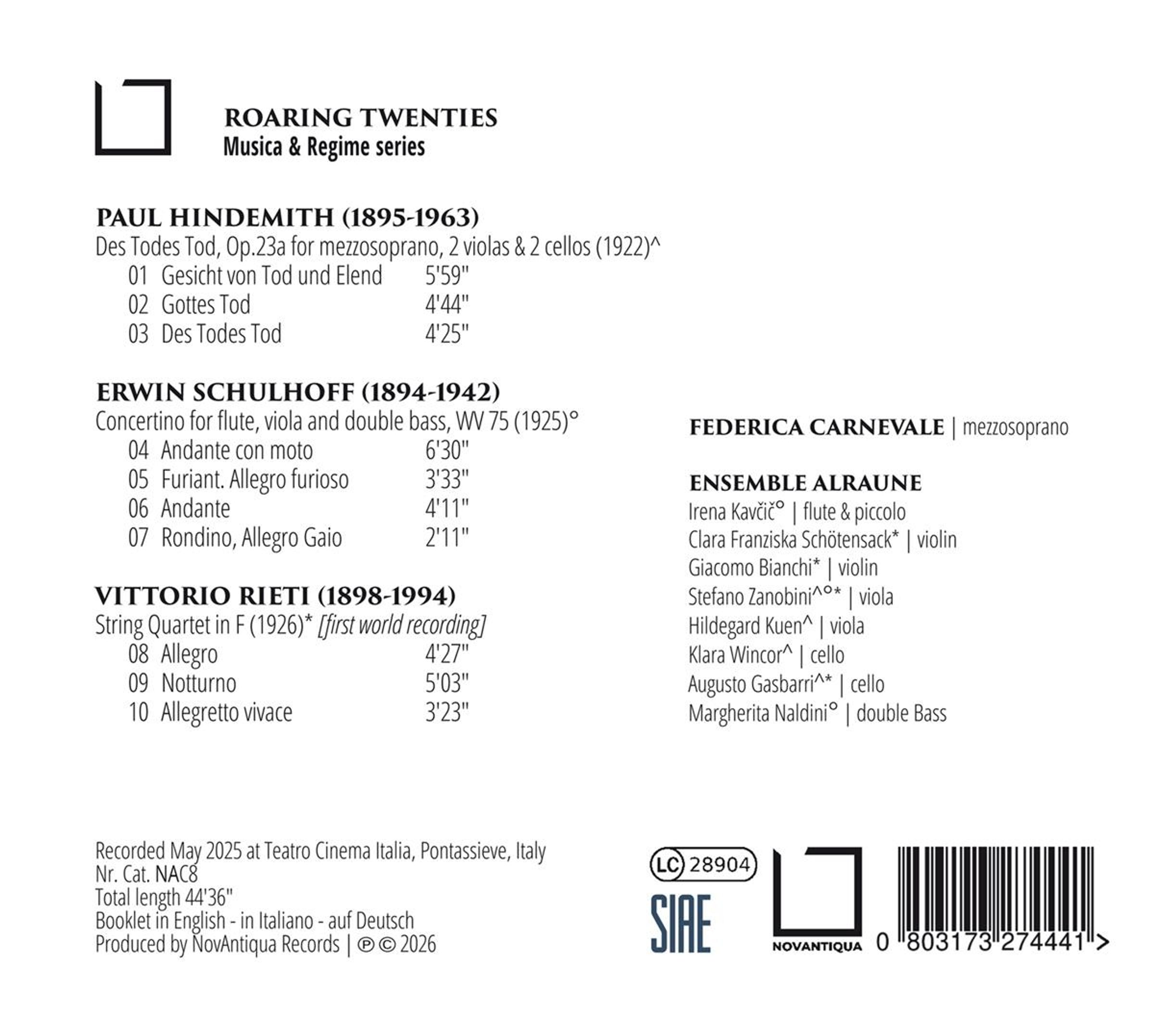 - Federica Carnevale (Mezzosopran), Ensemble Alraune