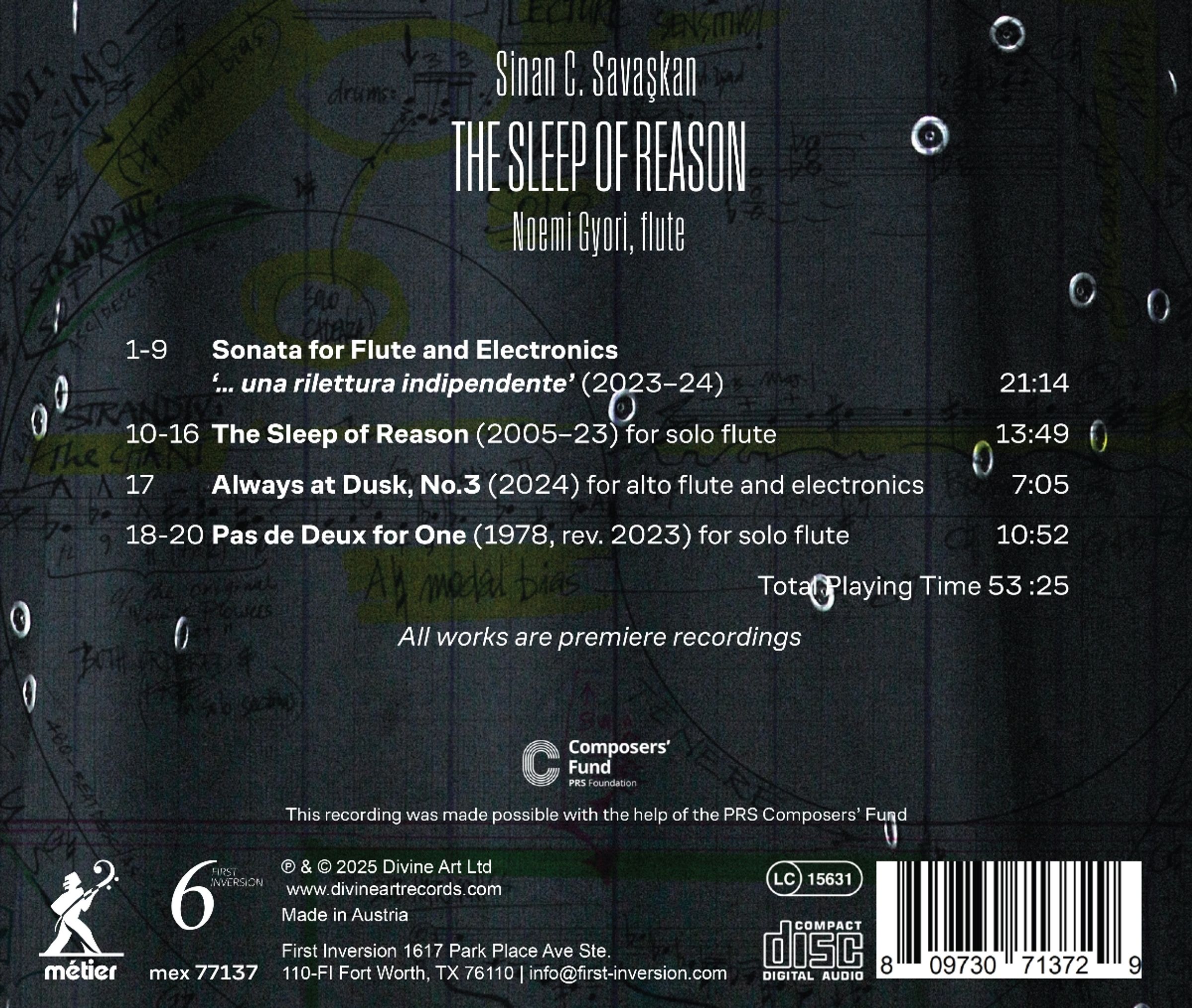 Sinan Carter Savaskan: The Sleep of Reason - Musik für Flöte & Elektronik auf CD