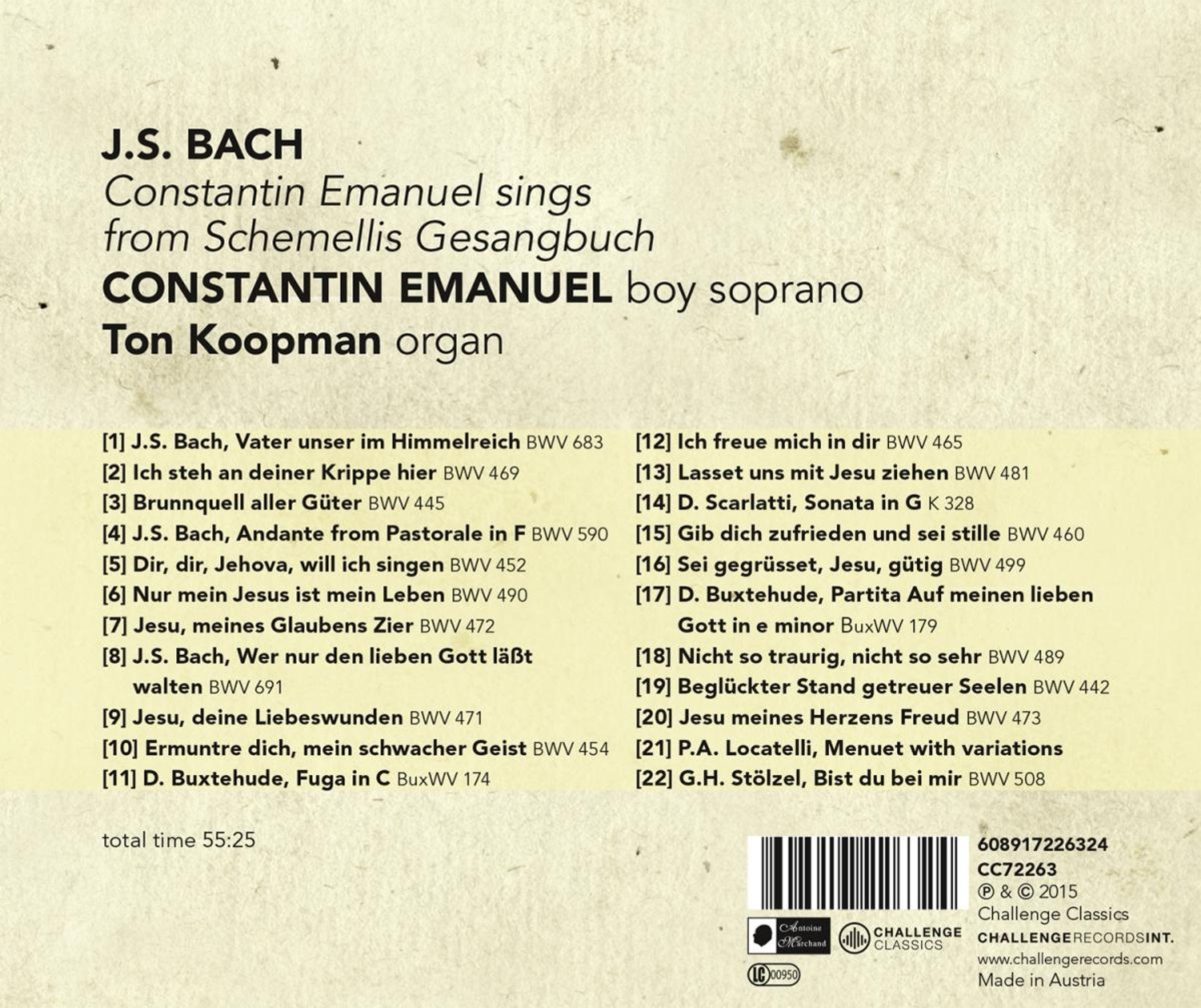 - Constantin Emanuel (Knabensopran), Ton Koopman (Orgel)