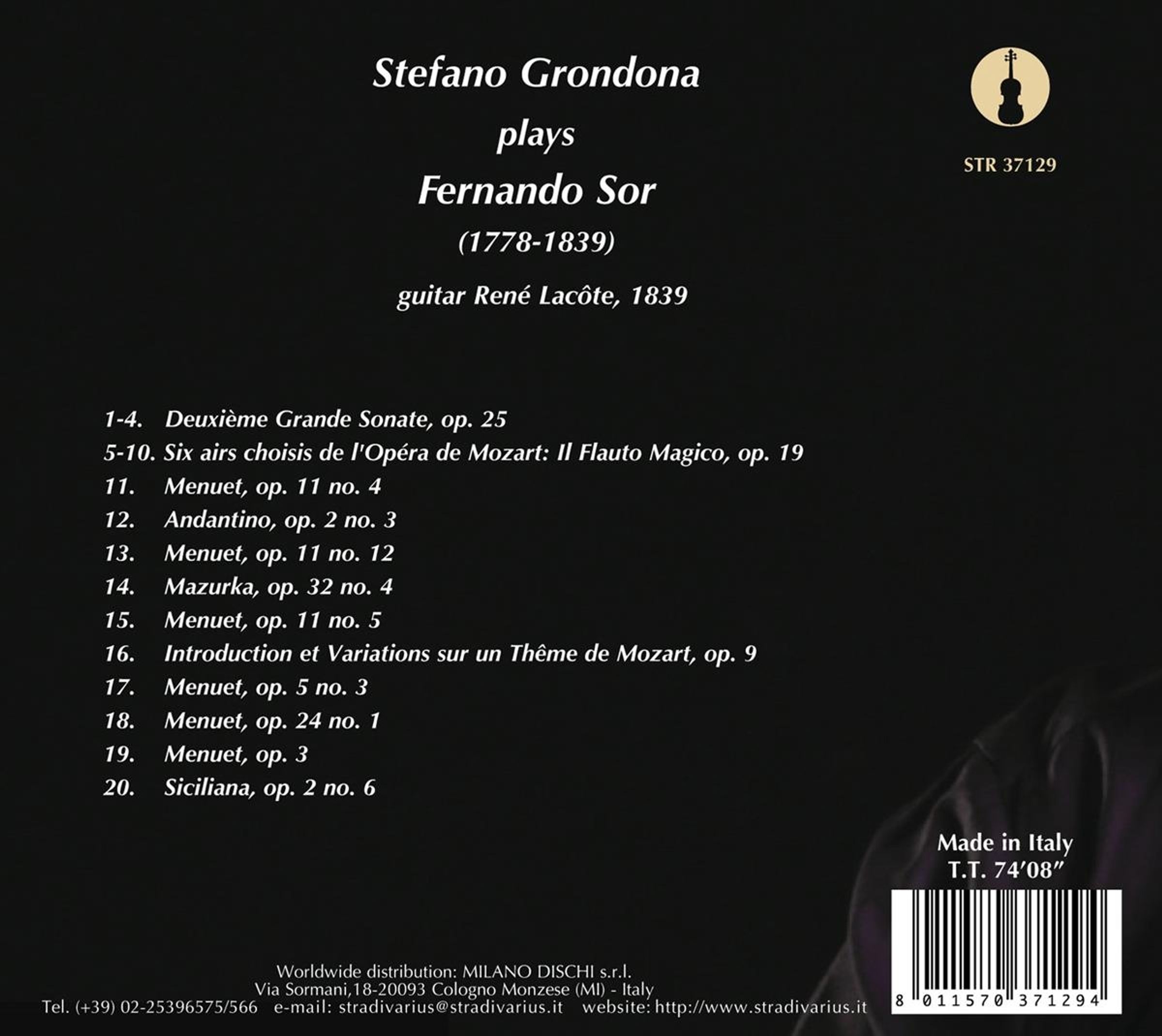 Grande Sonate Nr. 2 op. 25; Il Flauto Magico op. 19; Menuette op. 2 Nr. 3; op. 3, op. 5 Nr. 3, op. 11 Nr. 4, 5, 12, op. 24 Nr. 1; Mazurka op. 32 Nr. 4; Introduction & Variations sur un Theme de Mozart op. 9; Siciliana op. 2 Nr. 6