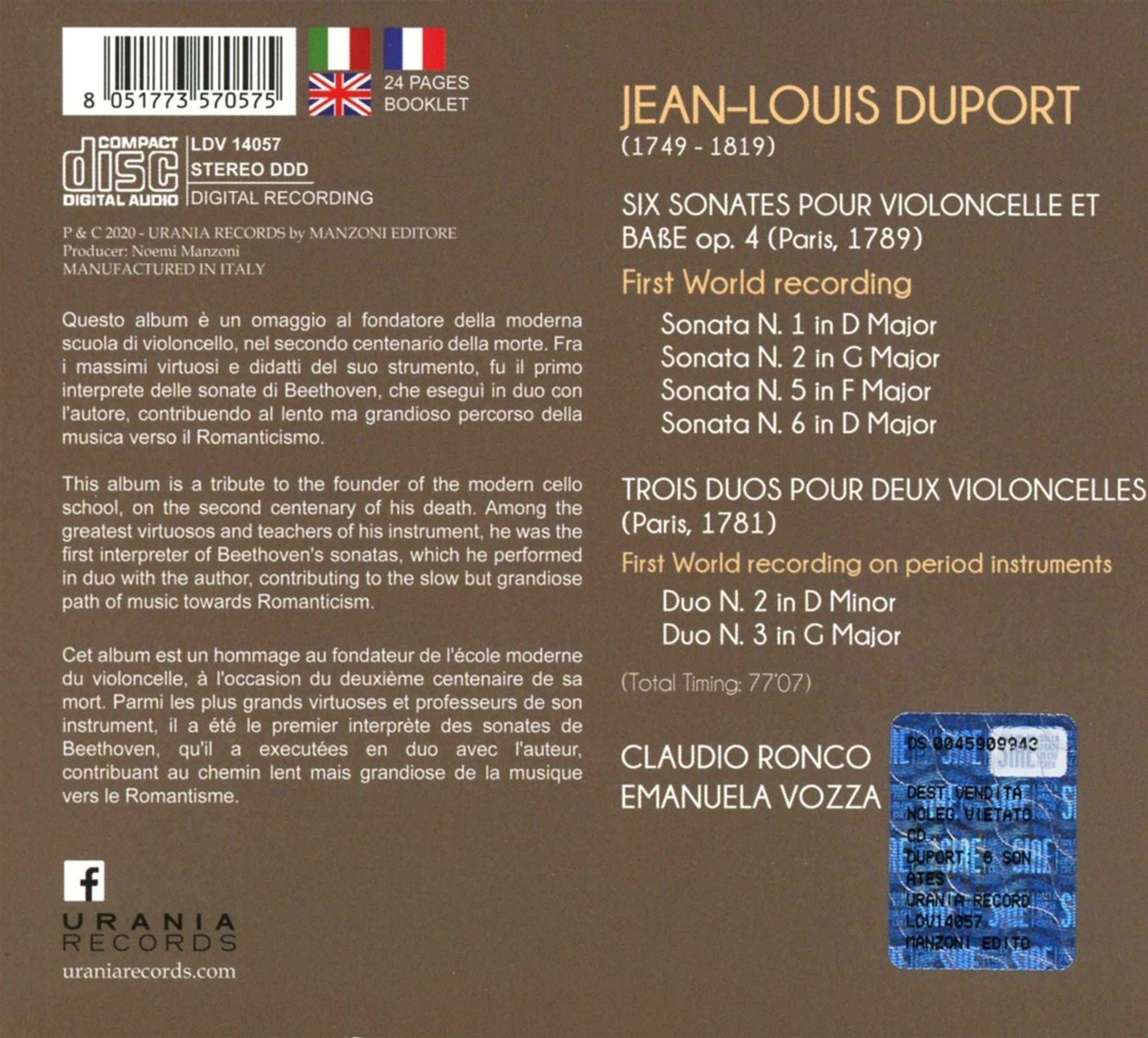 Dieses Album ist eine Hommage an den Begründer des modernen Cellospiels zum zweihundertsten Todesjahr des Meisters. Duport gehörte zu den größten Virtuosen und Lehrern seines Instruments. Er war der Erstinterpret von Beethovens Cellosonaten, die er zusammen mit dem Komponisten aufführte. In seinen eigenen Werken fand er stilistisch neue, großartige Wege auf der Reise von der Wiener Klassik zur Romantik.