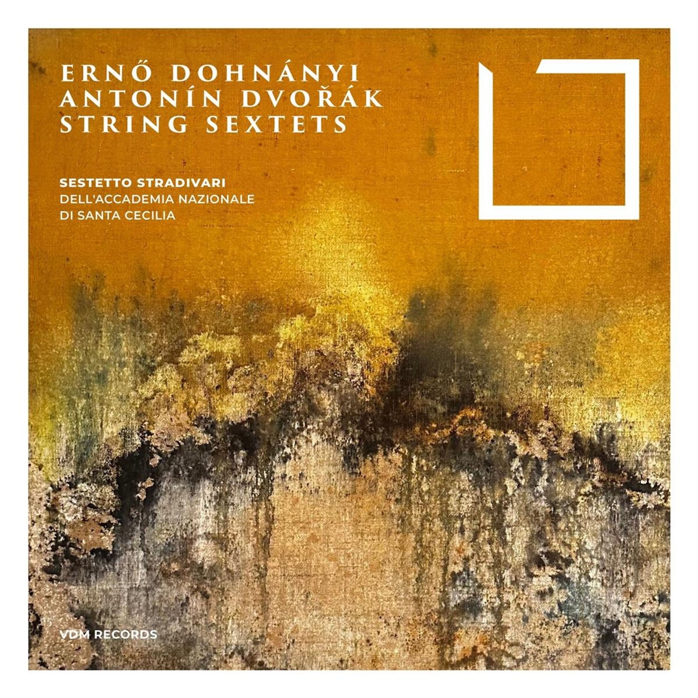 Text oben links: "ERNŐ DOHNÁNYI, ANTONÍN DVORÁK, STRING SEXTETS". Unten: Rustikale Textur in Braun- und Goldtönen., CD