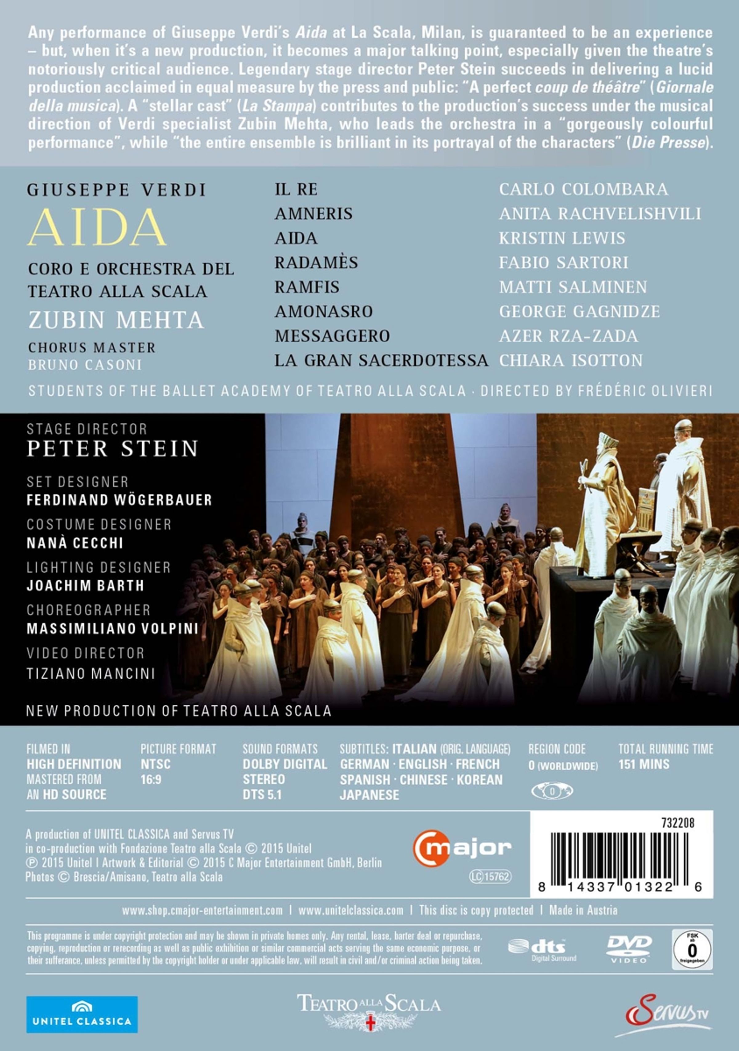 - Carlo Colombara, Anita Rachvelishvili, Fabio Sartori, Matti Salminen, Chiara Isotton, La Scala Choir, La Scala Orchestra, Zubin Mehta