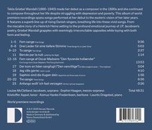 Diese Weltpremiere-Aufnahme umfasst Tekla Griebel Wandalls (1869-1953) Debüt in den 1890er Jahren bis hin zu den esoterischen Visionen ihrer späteren Jahre und präsentiert eine hervorragende Besetzung aufstrebender dänischer Sängerinnen und Sänger, die den lebhaften Liedern der Komponistin Leben einhauchen. Von der makabren Ironie einer Vertonung von Heinrich Heine bis hin zur tiefgründigen emotionalen Reise in J. P. Jacobsens Gedichten setzt sich Wandall mit scheinbar unvereinbaren Gegensätzen auseinander und spielt dabei sowohl mit Form als auch mit Gefühl. Tekla Griebel Wandall wuchs als Tochter eines deutschen Geigers auf, der sich als Musiker nur mühsam seinen Lebensunterhalt verdienen konnte. Nachdem sie eine Oper im Königlichen Dänischen Theater besucht hatte, wusste sie, dass es ihr Schicksal war, Komponistin zu werden und Opern zu schreiben. In den 1890er Jahren gab sie ihr Debüt als Komponistin. Ihre spätere Vergessenheit erzählt jedoch eine tragische Geschichte von Depressionen, einer gescheiterten Ehe und einem Leben in Armut. Trotz alledem war sie ihr Leben lang entschlossen, weiter zu komponieren. Sie hatte eine besondere Vorliebe für Lieder, in denen sie ihre wahre Leidenschaft verwirklichen konnte: Musik, die erzählerisch und ausdrucksstark war und eng mit Handlung und Text verbunden war. Die Weltpremiere-Aufnahmen auf diesem Album präsentieren eine Auswahl aus ihrem Liedschaffen, die ihren Sinn für Drama und Sehnsucht, Ironie und Humor hervorhebt. Dieses Album ist ein großer erster Schritt, um der Musik von Tekla Griebel Wandall den Platz zu geben, den sie verdient. Das Album wurde von vier bemerkenswerten Nachwuchskünstlern aufgenommen, nämlich Louise McClelland Jacobsen (Sopran) Sophie Haagen (Mezzosopran), Kristoffer Appel (Tenor) und Asmus Hanke Frederiksen (Bariton), die die ersten Interpretationen dieser selten zu hörenden Lieder darbieten. Begleitet werden sie von Laurits Dragsted am Klavier.