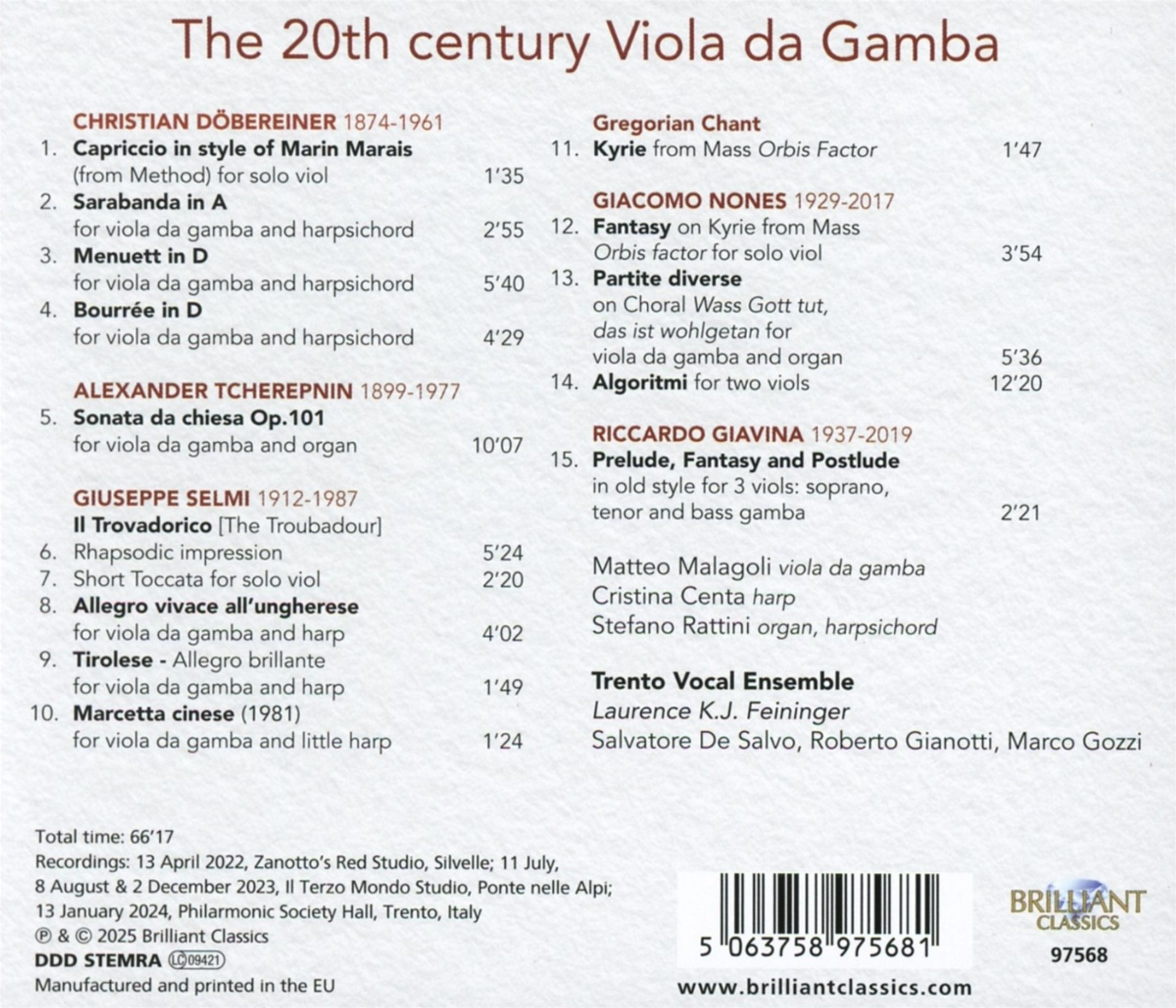 Matteo Malagoli - The 20th Century Viola da gamba auf CD