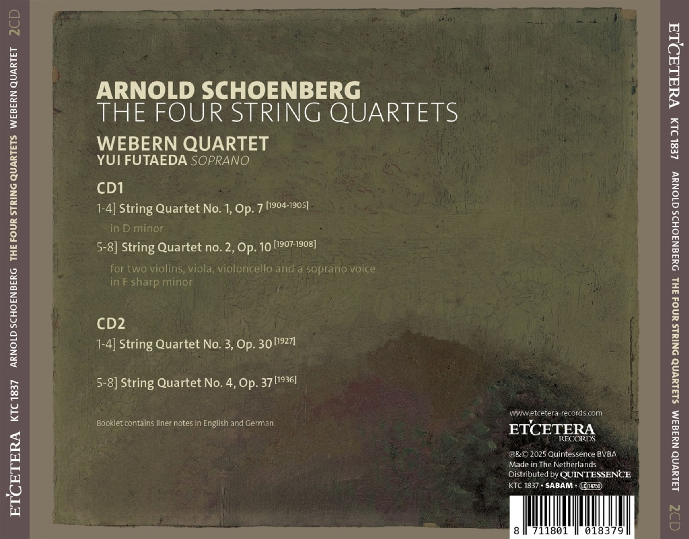 (Nr. 1 d-moll op. 7; Nr. 2 fis-moll op. 10 für Sopran & Streichquartett; Nr. 3 op. 30; Nr. 4 op. 37)