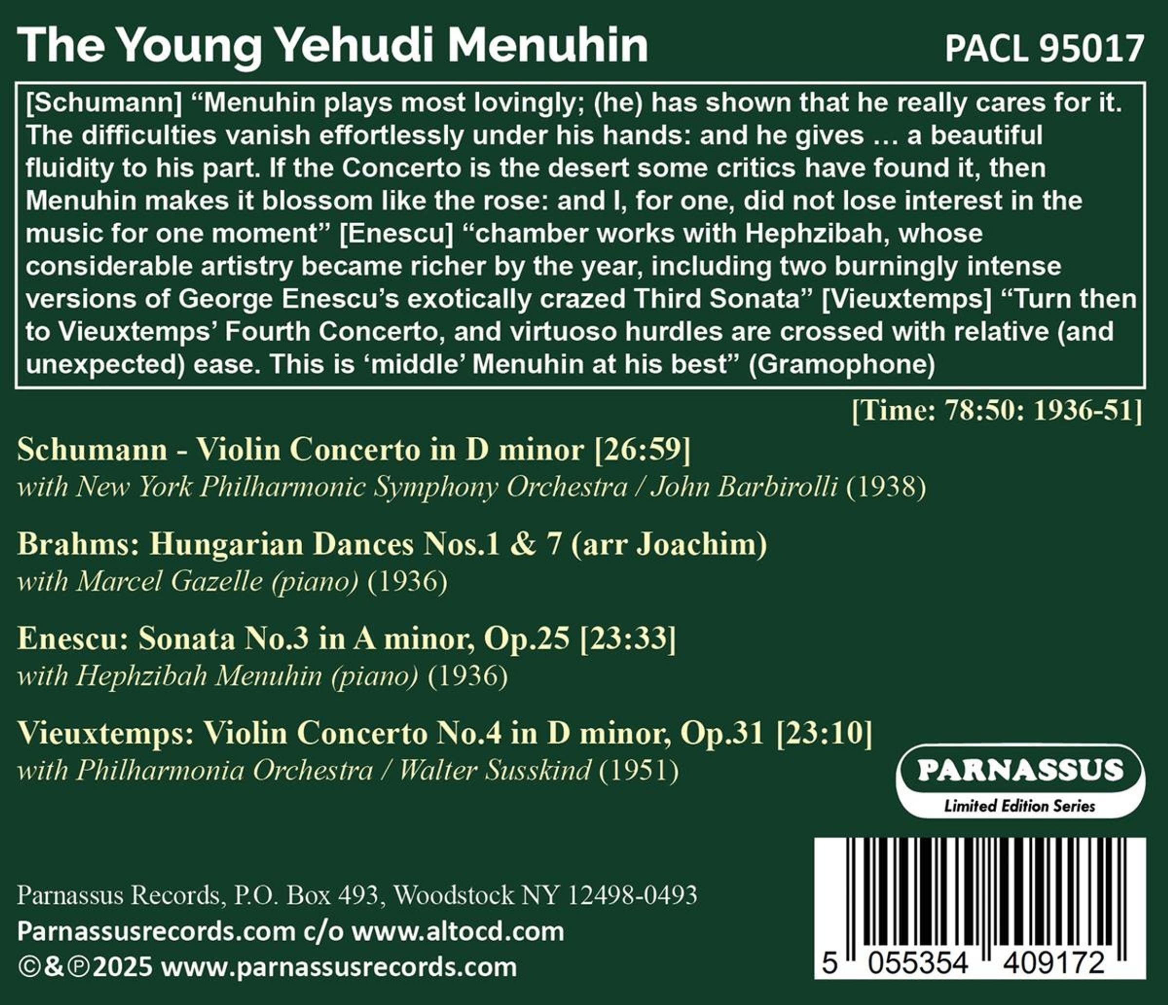 Yehudi Menuhin, Marcel Gazelle, Hephzibah Menuhin, Philharmonic Symphony Orchestra of New York, Philharmonia Orchestra, John Barbirolli, Walter Susskind