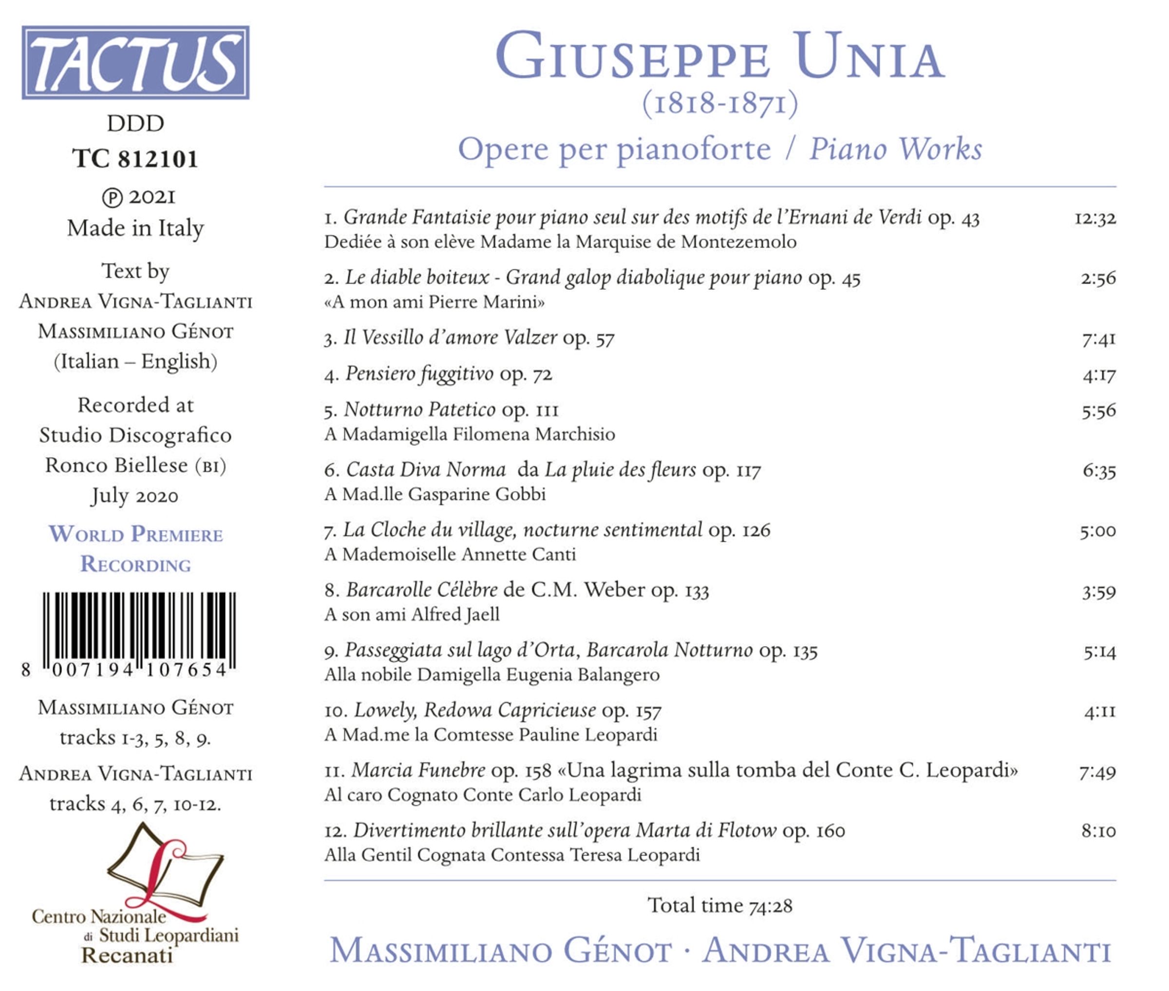 Giuseppe Unia (1818-1871): Klavierwerke, CD, CD