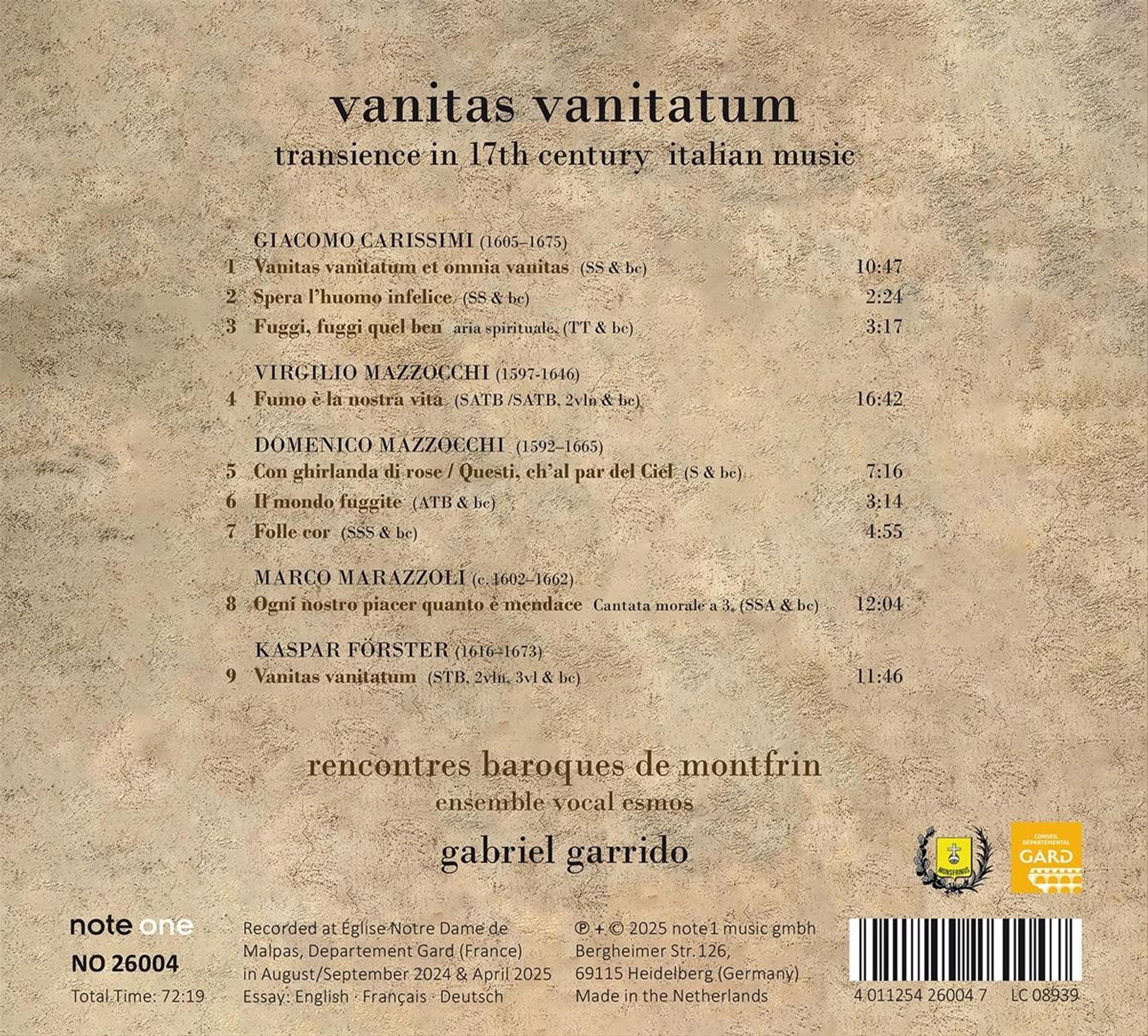 Giacomo Carissimi: Vanitas vanitatum et omnia vanitas; Spera l'huomo infelice; Fuggi, fuggi, quel ben