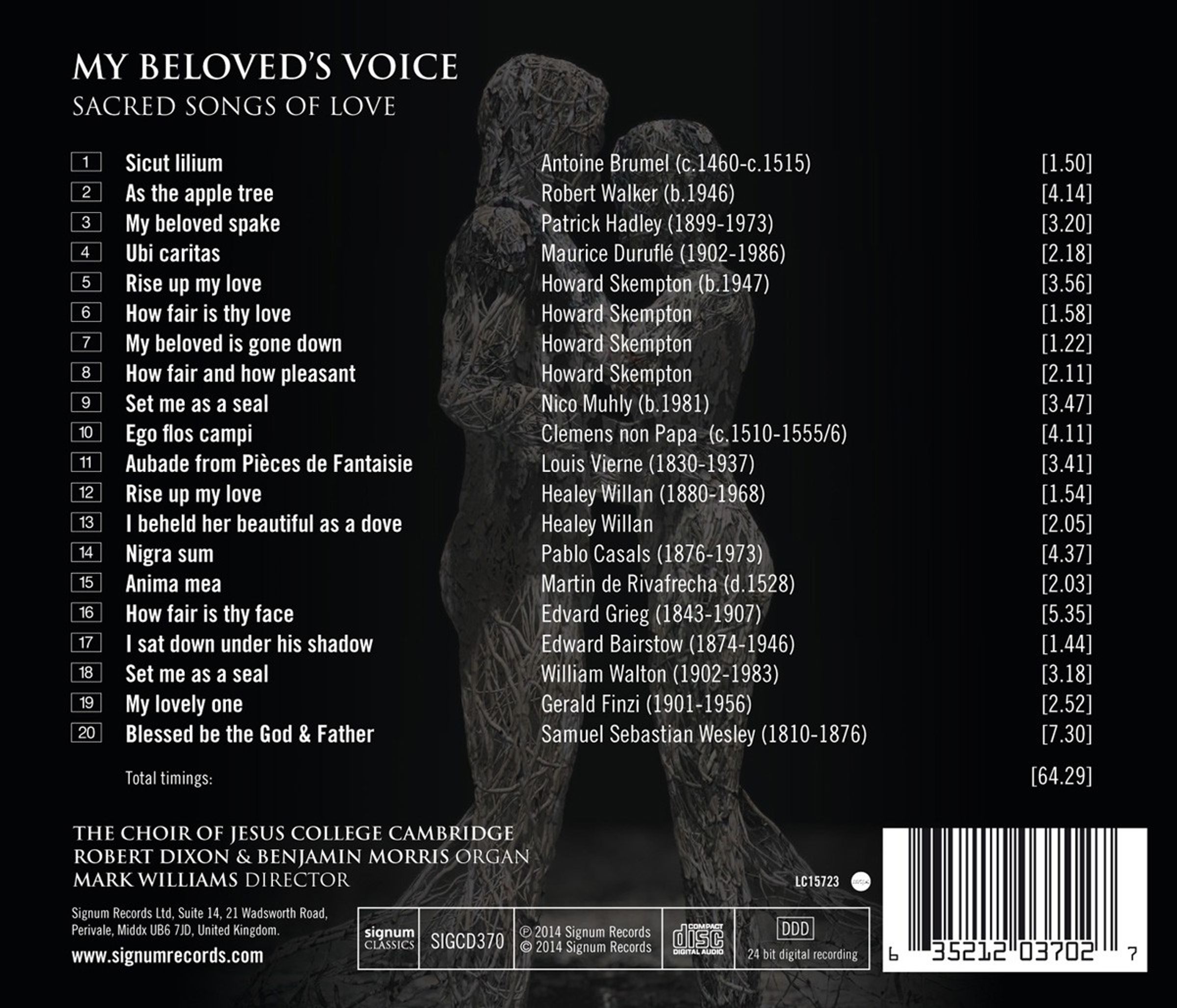 Das 1496 gegründete Jesus College Cambridge gehört zu den traditionsreichsten Colleges Englands. Neben dem Chapel Choir existiert dort auch der Choir of Jesus College Cambridge, in dem auch Frauenstimmen zugelassen sind. Auf seiner dritten CD für SIGNUM CLASSICS präsentiert der Chor ein abwechslungsreiches Programm mit Chorwerken aus dem 15. bis 21. Jahrhundert zum Thema »Liebe«.