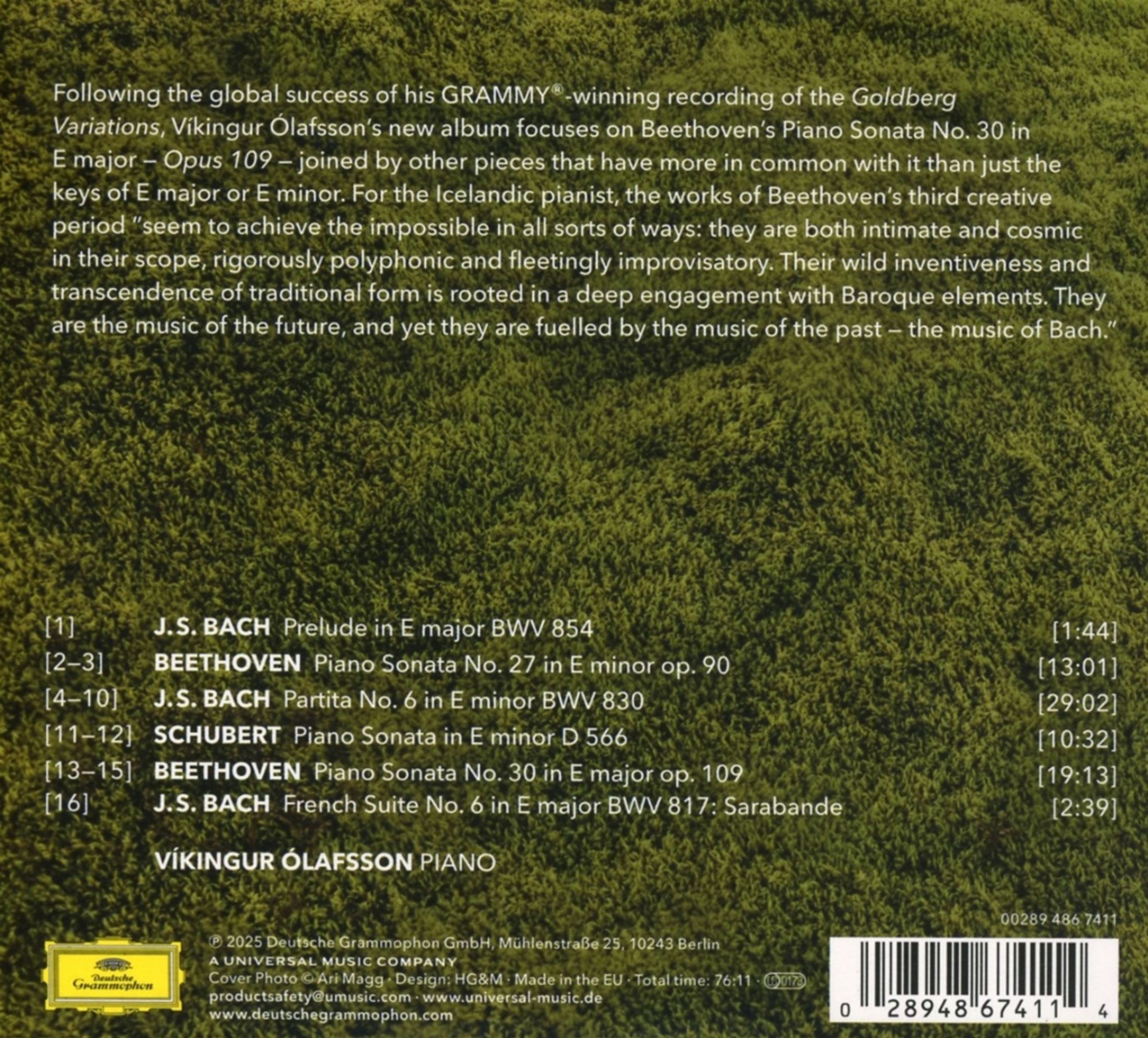 Seine viel beachtete Einspielung der »Goldberg Variationen« brachte dem Isländer zuletzt eine Menge Aufmerksamkeit und so manche Auszeichnung ein. Stücke von Bach finden sich auch auf diesem Werk wieder. Gemeinsam mit Kompositionen von Schubert bilden sie den Rahmen für Beethovens Klaviersonate Nr. 30 in E-Dur, die im Zentrum dieser meisterhaften Aufnahmen steht.