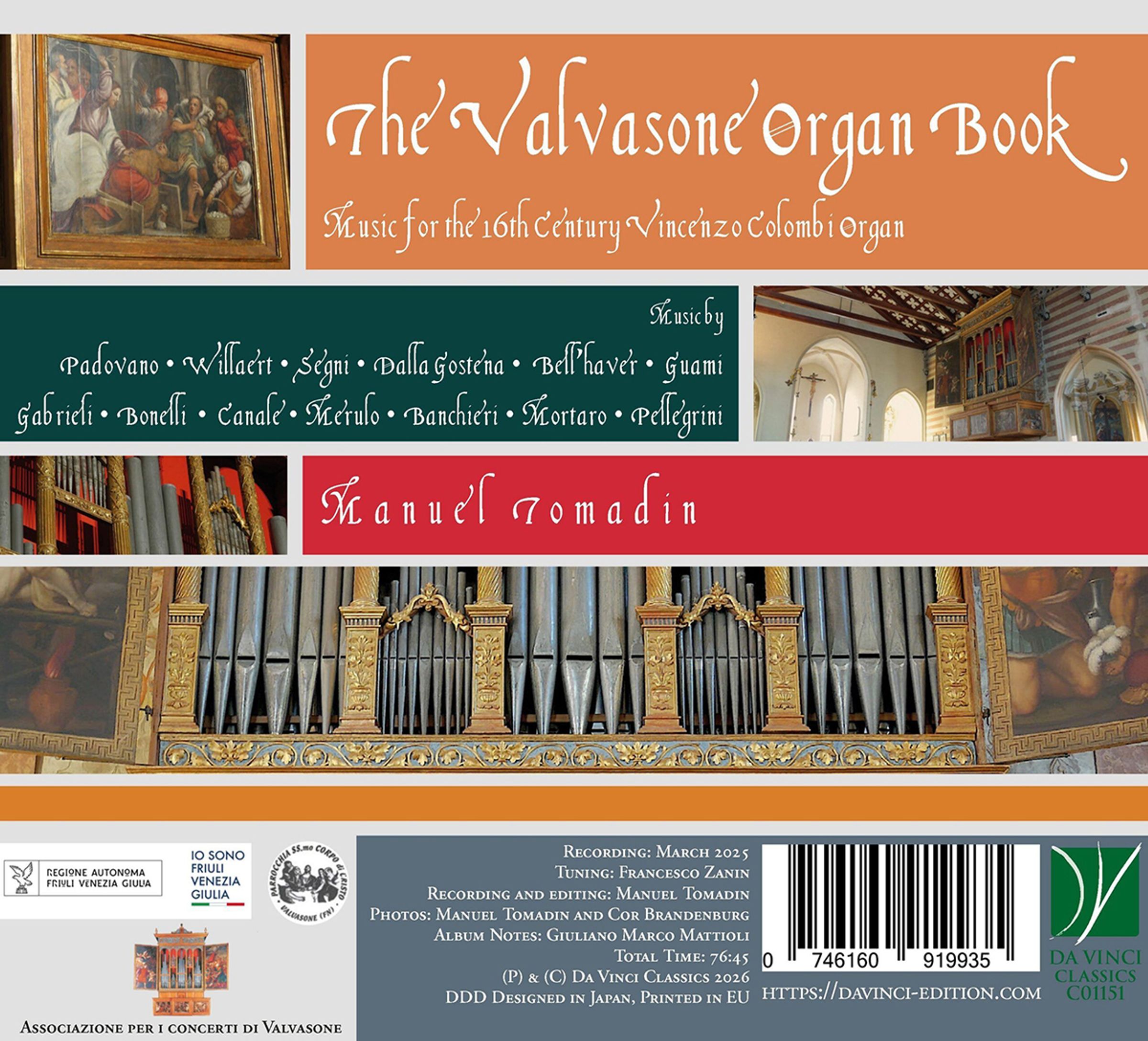 The Valvasone Organ Book - Music for the 16th Century Vincenzo Colombi Organ