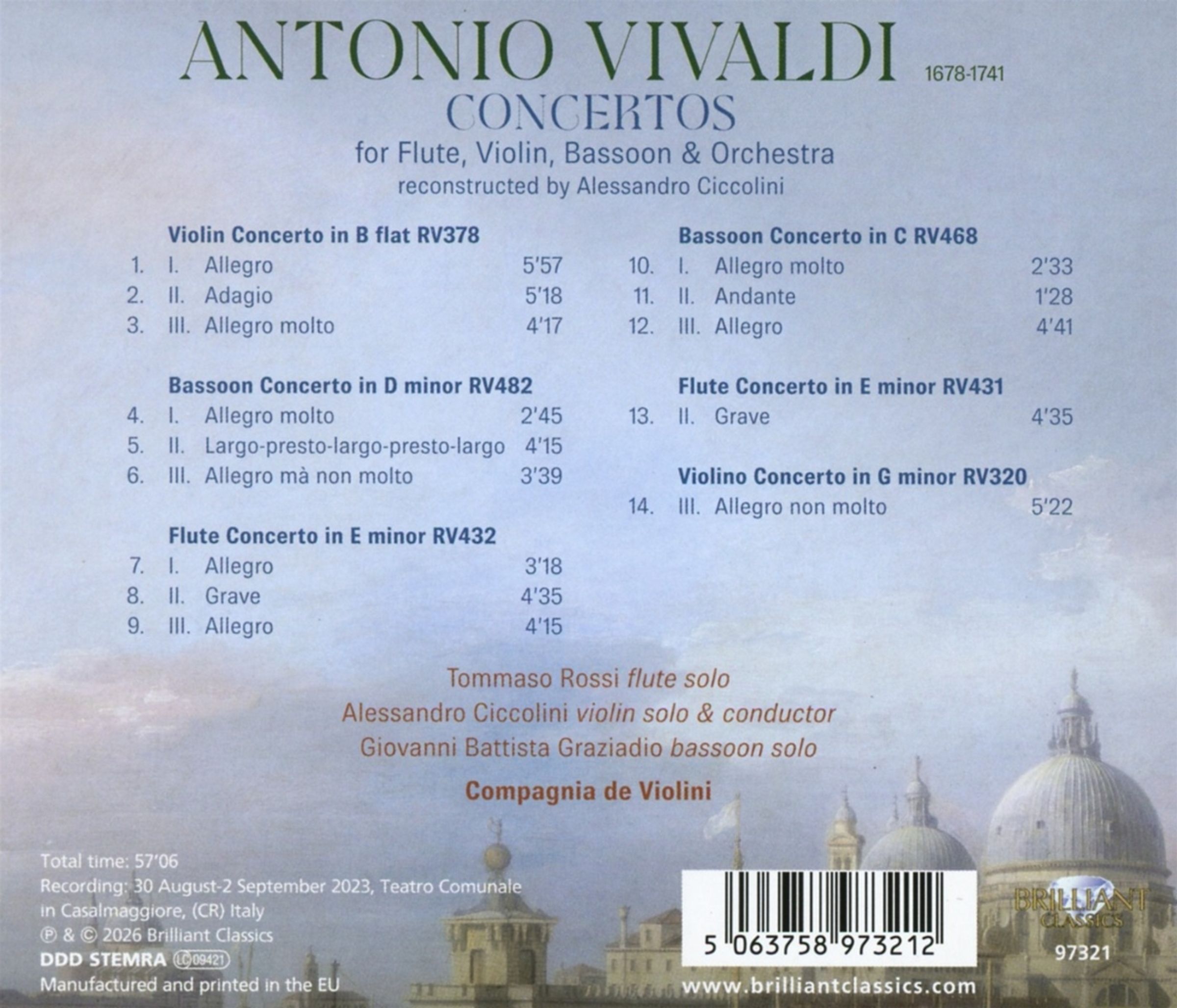 Violinkonzert RV 378; 3. Satz aus dem Violinkonzert RV 320; Fagottkonzerte RV 468 & 482; Flötenkonzert RV 432