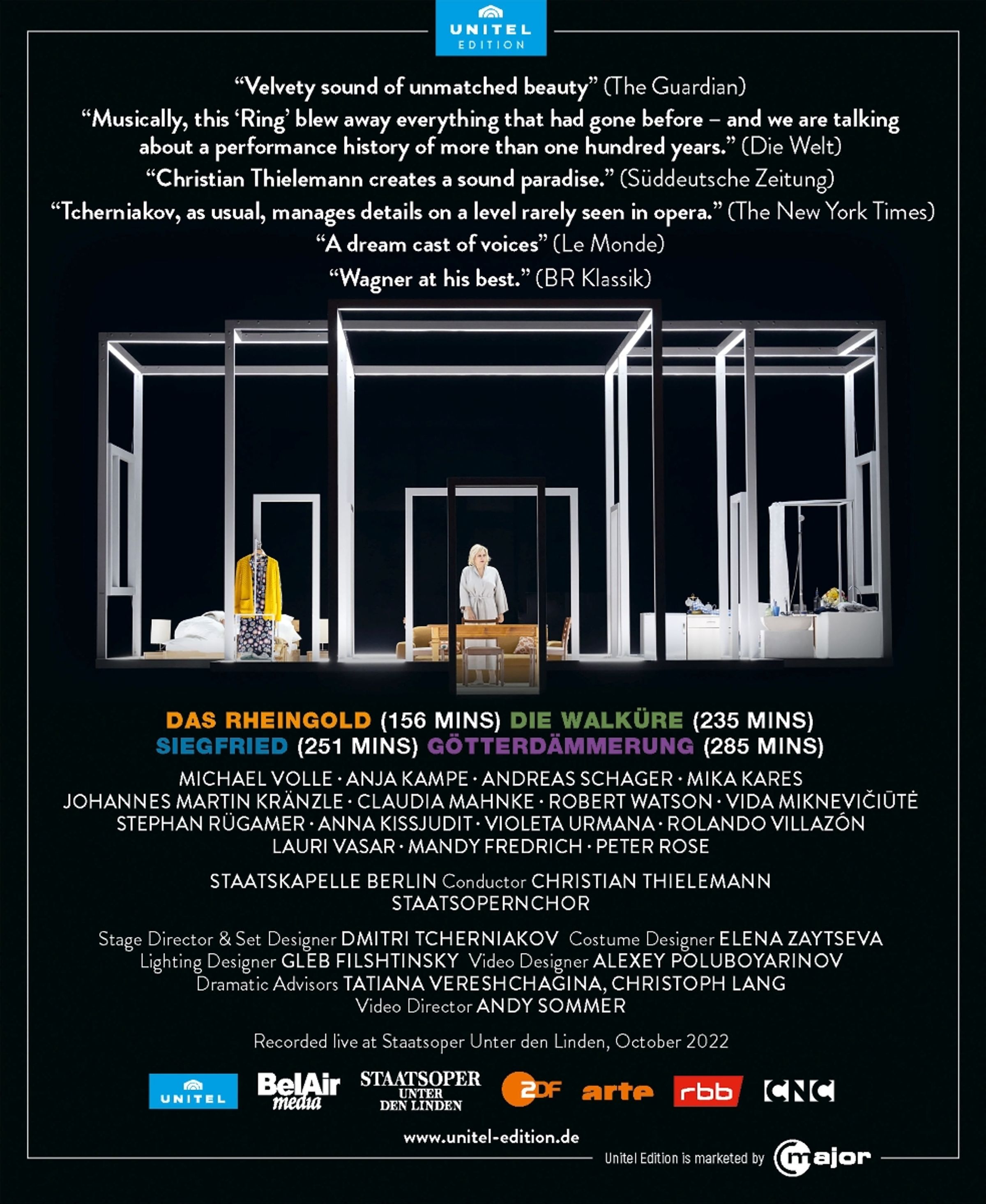 weltweit gefeierter Triumph, nicht zuletzt wegen der hochkaratigen Besetzung. Zu horen sind u. a. Michael Volle, Anja Kampe, Andreas Schager, Mika Kares, Johannes Martin Kranzle, Claudia Mahnke, Robert Watson, Vida Mikneviciute, Violeta Urmana, Stephan Rugamer und Rolando Villazon. Nachdem die vier Teile der Tetralogie 2024 einzeln auf DVD und Blu-ray veroffentlicht wurden, erscheint das Boxed Set in bester Video- und Audioqualitat exklusiv im