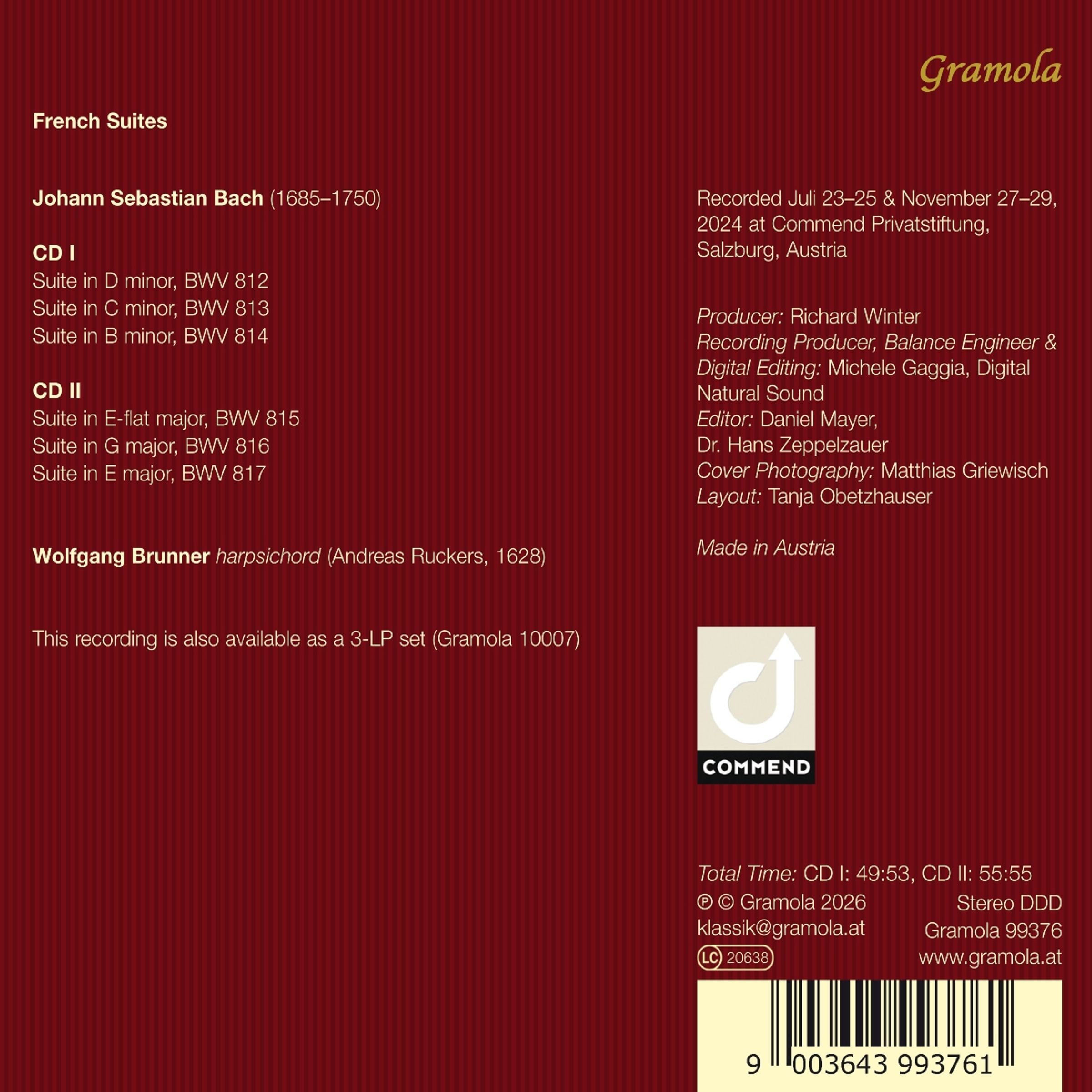 Andreas Ruckers aus dem Jahr 1628, das aus der flamischen Cembalo-Dynastie der Familie Ruckers stammt und auf dieser Aufnahme mit den sechs franzosischen Suiten von Johann Sebastian Bach zu horen ist. Eine entsprechend blumige, im beste Sinne 'barocke' Interpretation dieses Bachschen Kernrepertoires ist zu erwarten.