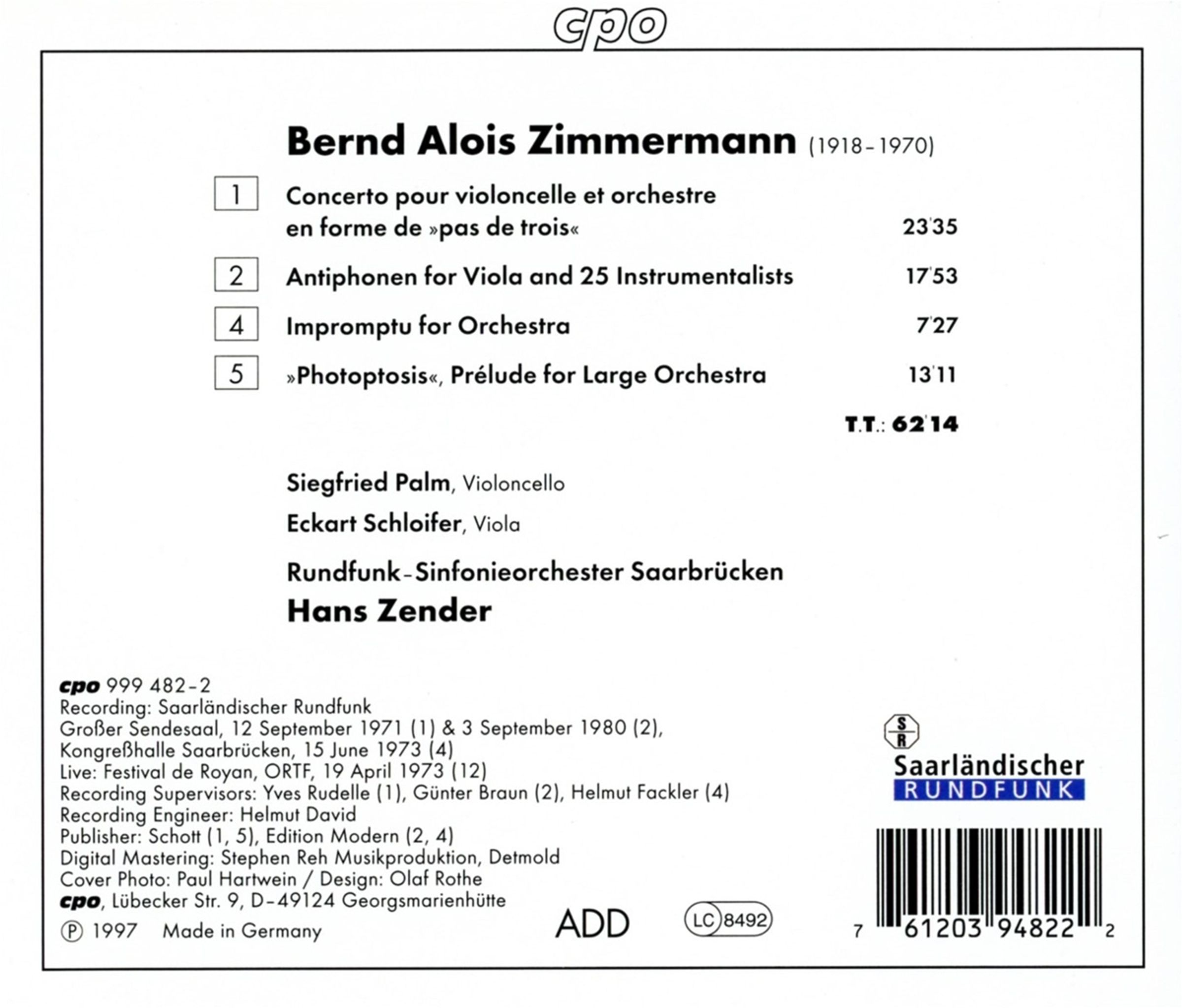- Siegfried Palm, Eckart Schloifer, Rundfunk-Sinfonieorchester Saarbrücken, Hans Zender