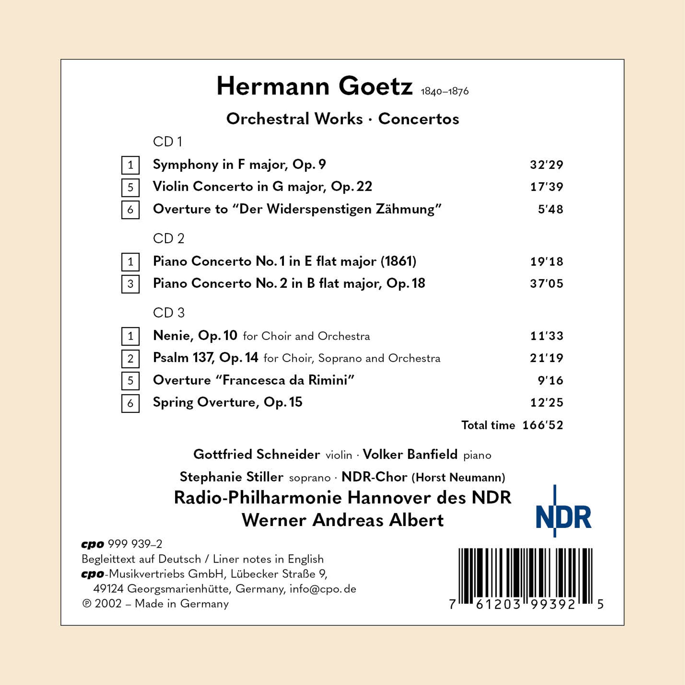 In Zusammenarbeit mit dem NDR haben wir nun das symphonische Gesamtwerk Goetz' eingespielt und veröffentlichen zunächst in diesem Monat seine einzige Sinfonie op. 9, das Violinkonzert op. 22 und die Ouvertüre zu seiner Oper »Der Widerspenstigen Zähmung«.
