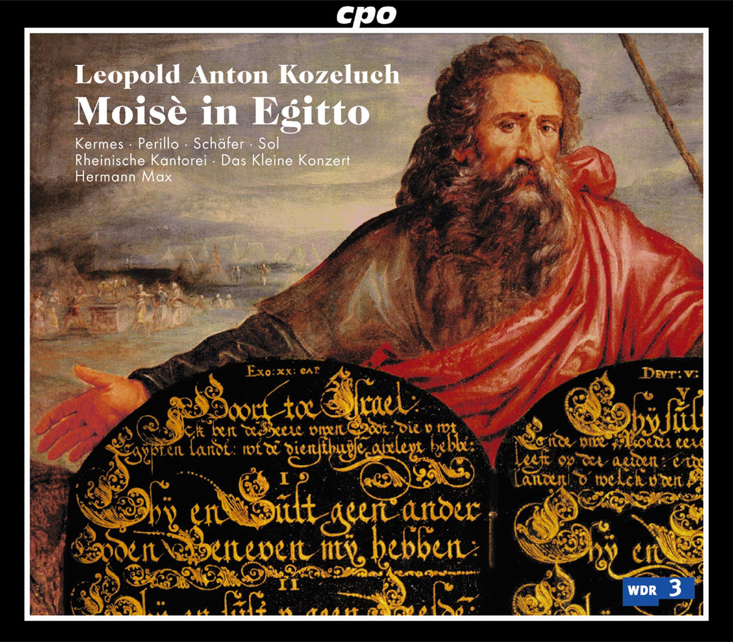 Völlig zu Unrecht des öfteren als intriganter Widersacher Mozarts und Haydns dargestellt, war Leopold Anton Kozeluh in Wirklichkeit ein zu seiner Zeit außerordentlich beliebter und erfolgreicher Komponist. Bereits 1781 hatte Kozeluh einen dermaßen guten Ruf, dass er vom Salzburger Erzbischof das Angebot erhielt, als Nachfolger von Mozart das Amt des Hoforganisten zu übernehmen. Der böhmische Komponist hat ungefähr 250 Werke hinterlassen, unter denen sich neben Sinfonien, Klaviermusik, Opern, Kantaten, Streichquartetten auch einige Oratorien befinden. Sein 1787 im alten Burgtheater uraufgeführtes Oratorium Moisè in Egitto – basierend auf dem Buch Exodus des Alten Testaments – gilt als der letzte große Erfolg eines italienischen Oratoriums in Wien und erzählt nicht den Auszug der Israeliten aus Ägypten, sondern kreist mehr um Einzelcharaktere in der Zeit vor dem Aufbruch: um Moses, seinen jüngeren Bruder Aaron sowie den Pharao und dessen Tochter Merime. Das Werk zeichnet sich durch das Weglassen der oft als langweilig empfundenen Secco-Rezitative und durch stärkere psychologisch-musikalische Zeichnungen als sehr modernes seiner Gattung aus und weist bereits eine starke Nähe zur biblischen Oper auf. Als optimale Sachwalter wirken erneut Das Kleine Konzert, die Rheinische Kantorei unter dem Dirigat von Hermann Max. Solisten sind: Simone Kermes, Linda Perillo, Markus Schäfer und Tom Sol.