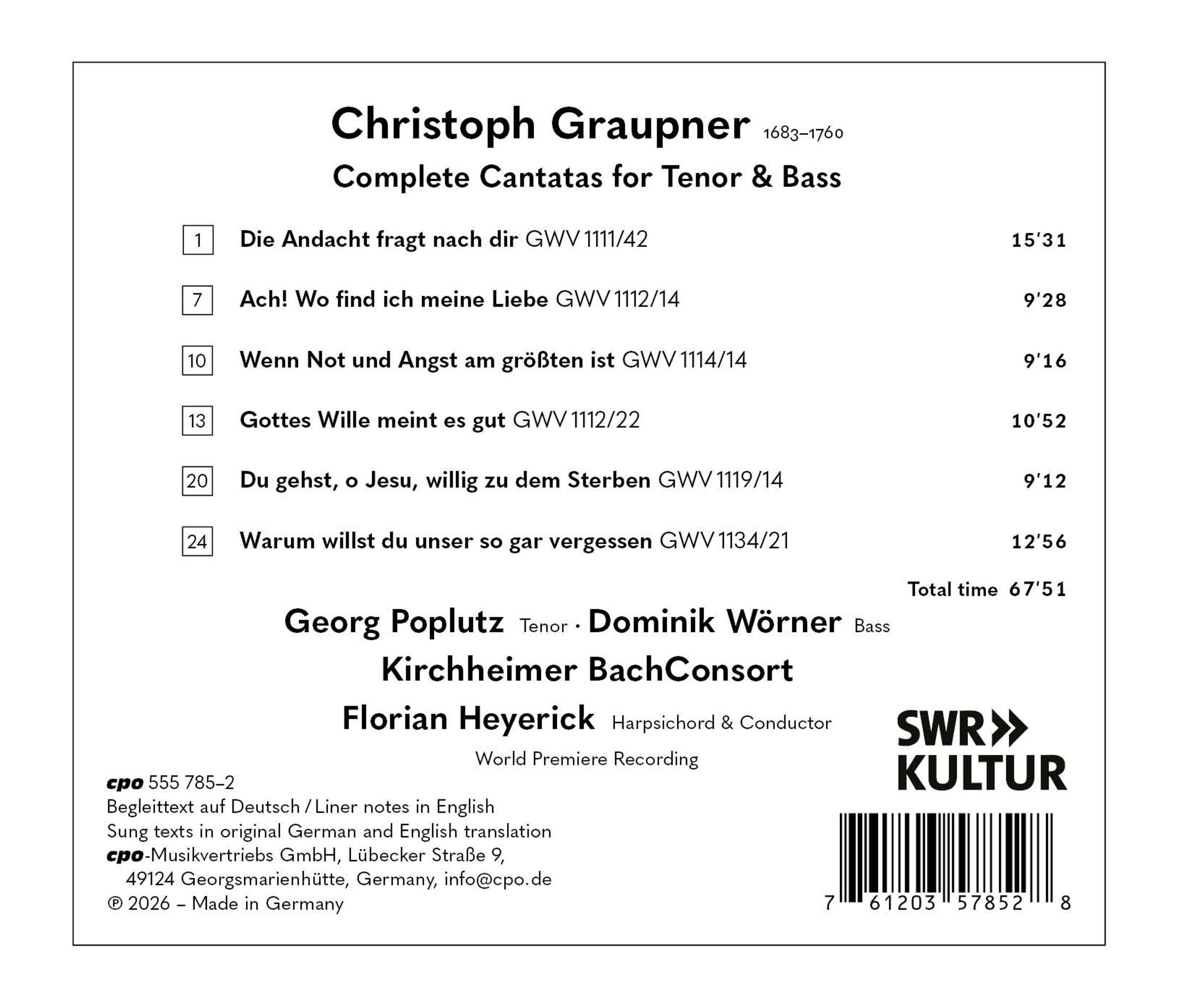 Christoph Graupner: Sämtliche Kantaten für Tenor & Bass auf CD