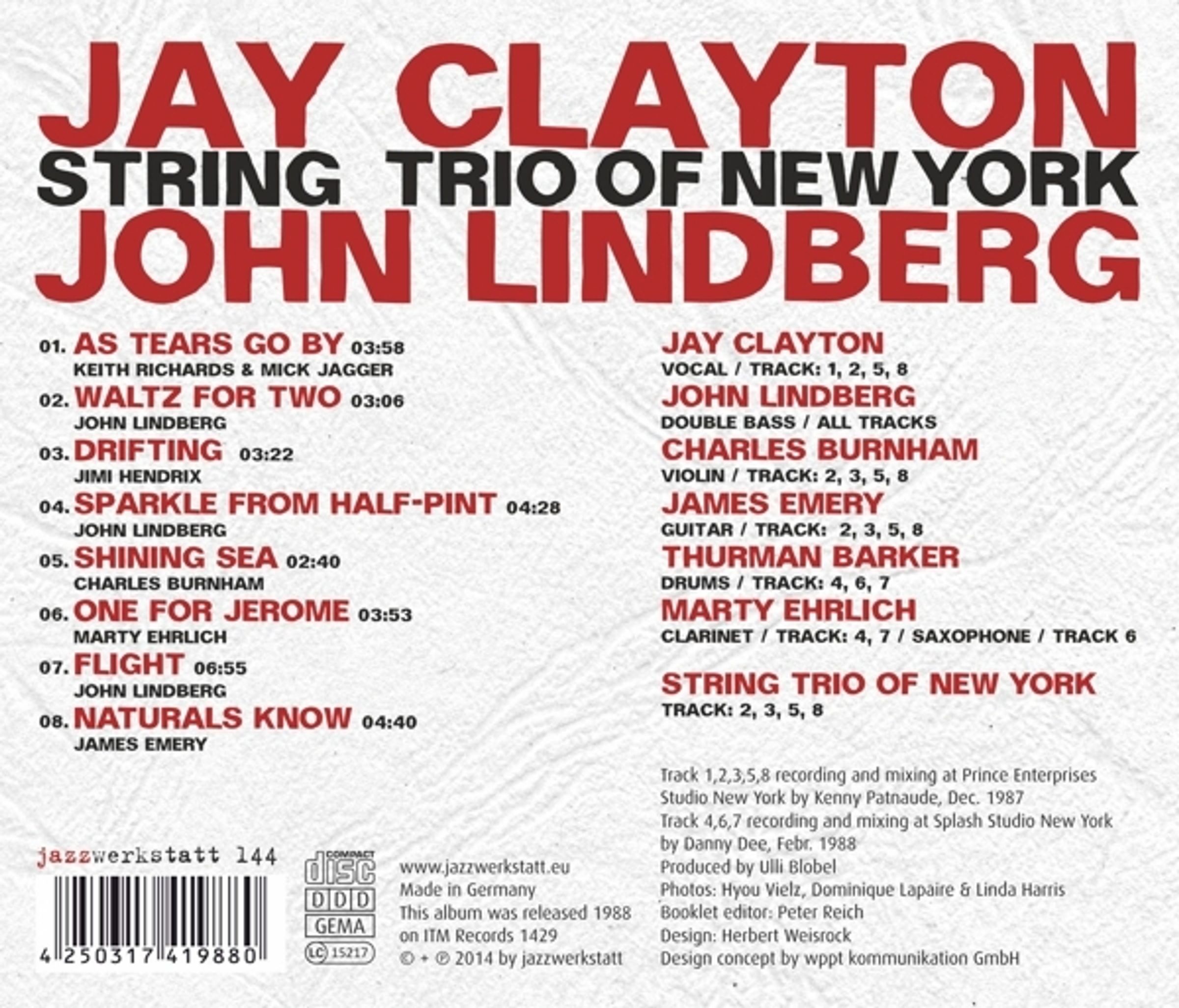 Jay Clayton & John Lindberg: As Tears Go By & Some More Songs auf CD