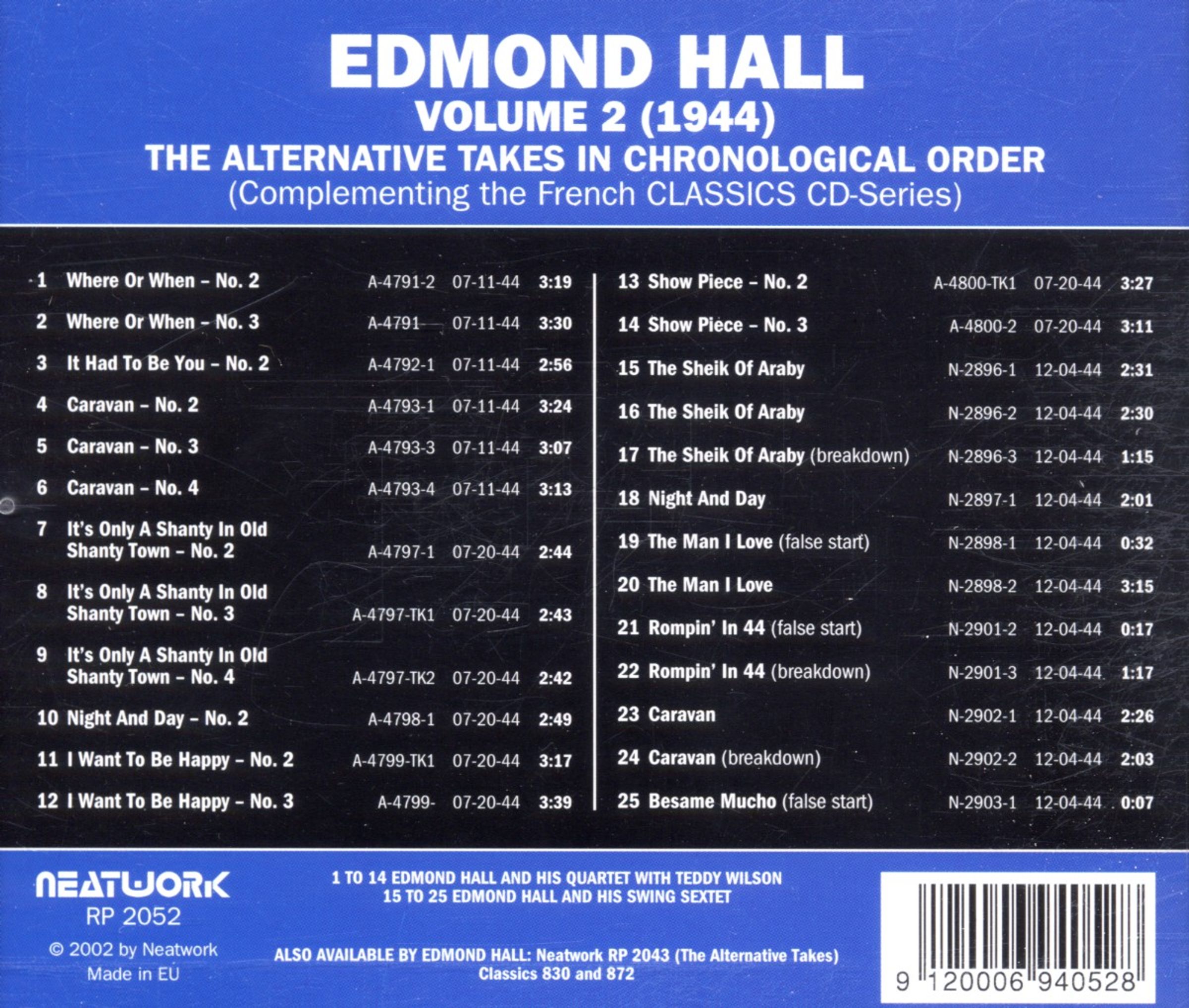 Edmond Hall: Alternative Takes Volume 2 auf CD