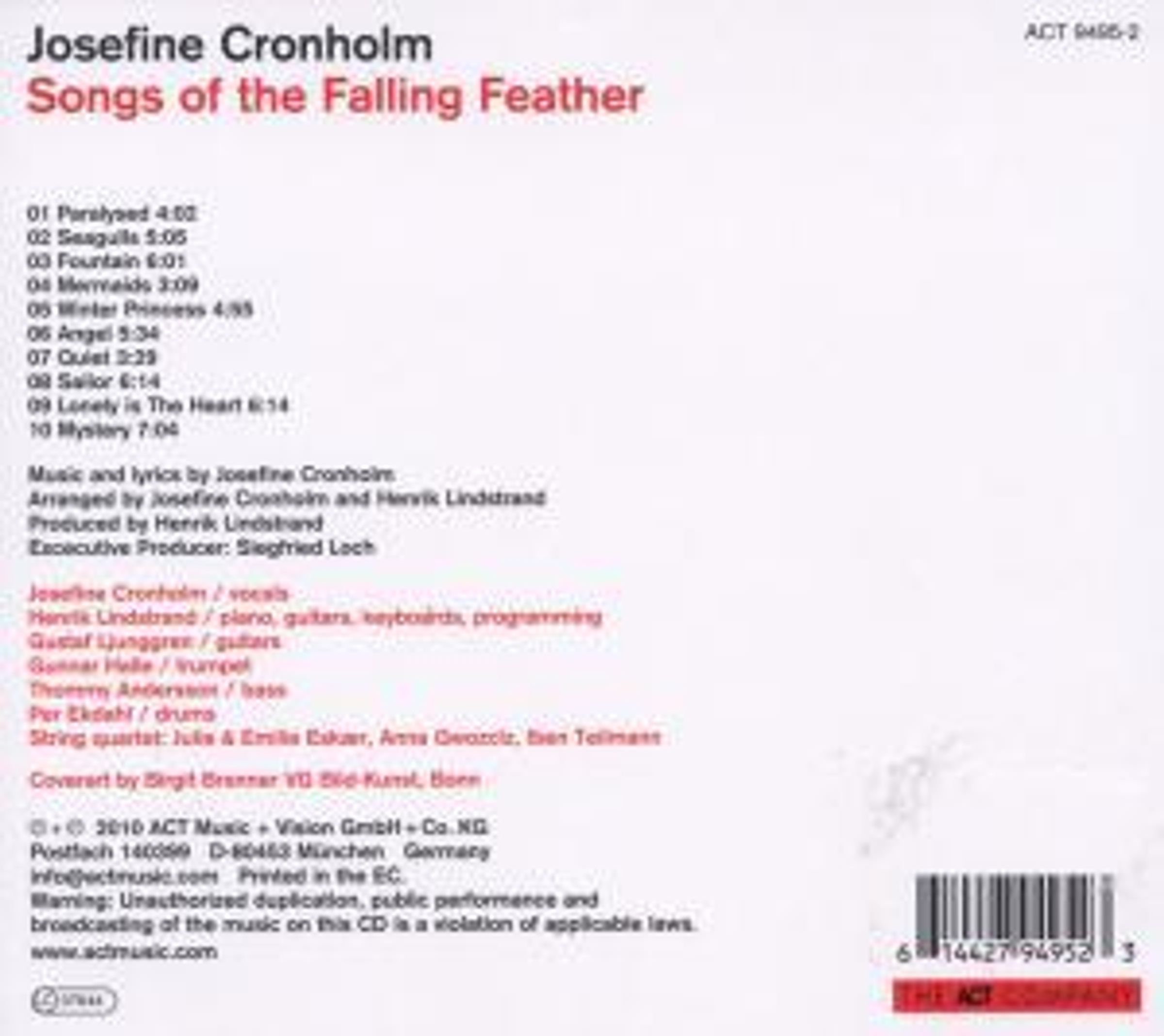 "With this intensely personal comeback Cronholm has reached new heights in modern vocal jazz. Songs Of A Falling Feather is a minor masterpiece and, when all is said and done, certain to be hailed among the best jazz crossover albums of the year." (wearsthetrousers. com)