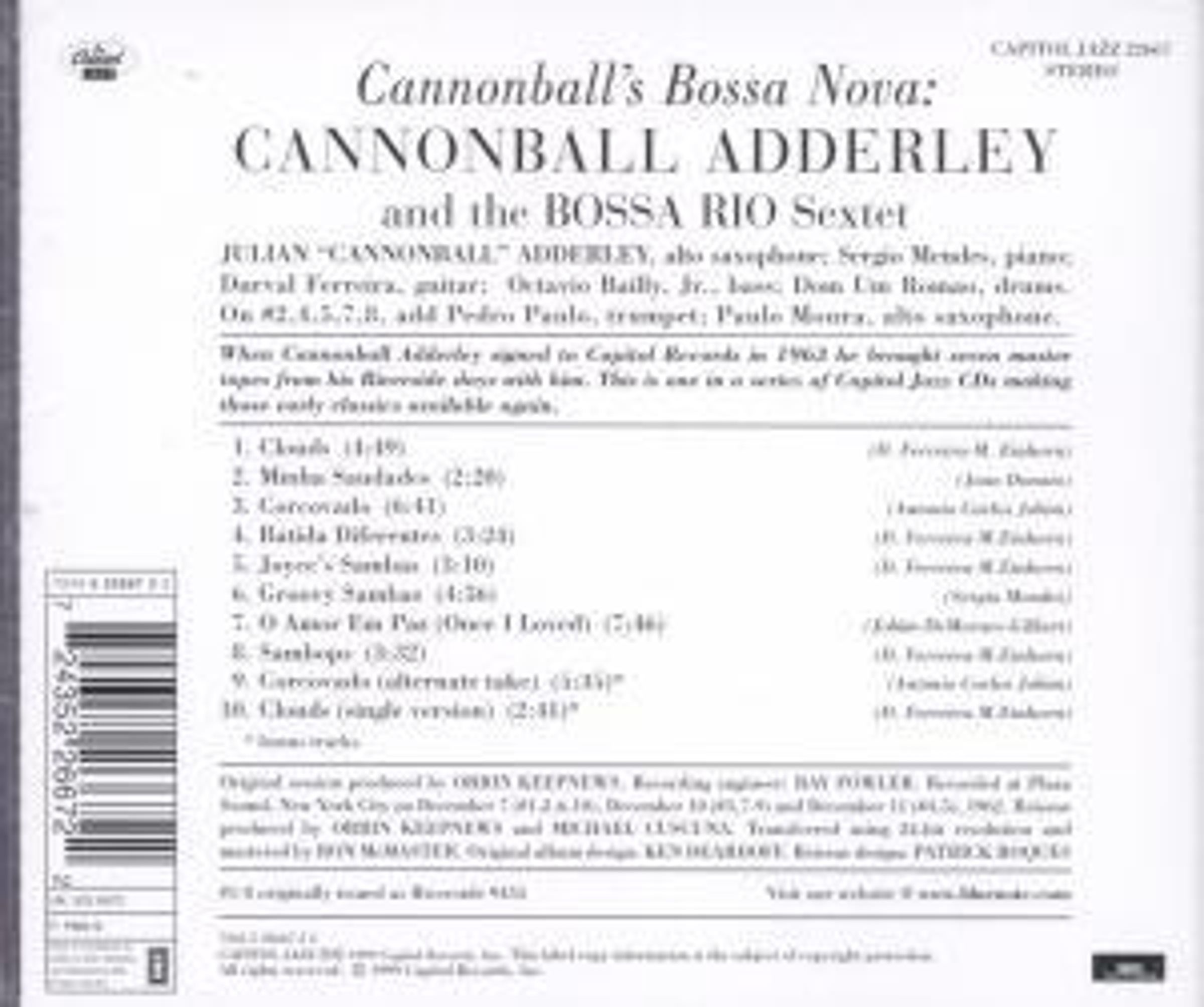 M. Möhring in Jazzthetik 4/00: "Zusammen mit dem brasilianischen Bossa Rio Sextet unter Leitung von Pianist Sergio Mendes (!) hören wir hier feinsten Bossa Nova. Rauer und ungeschliffener als Kollege Stan Getz, zum Glück, fegt Adderley hier durch die Changes, traumhaft unterstützt von den federleichten Bossa- Beats des Schlagzeugers Dom Um Romao."Disk 1 von 1 (CD)