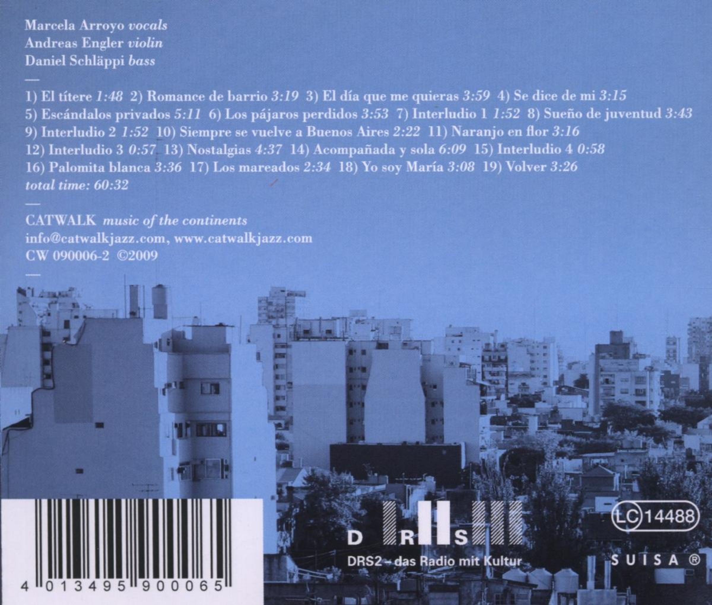 Die Adaptionen des Trios leben vom Wechselspiel zwischen Instrumentalimprovisation, arrangierten Partien und der ergreifenden Stimme von Marcela Arroyo. Musik mit unverwechselbarem Klang und Charme, die gleich beim ersten Hinhören ohne jedes Klischee vertraut klingt. Selbst gewiefte