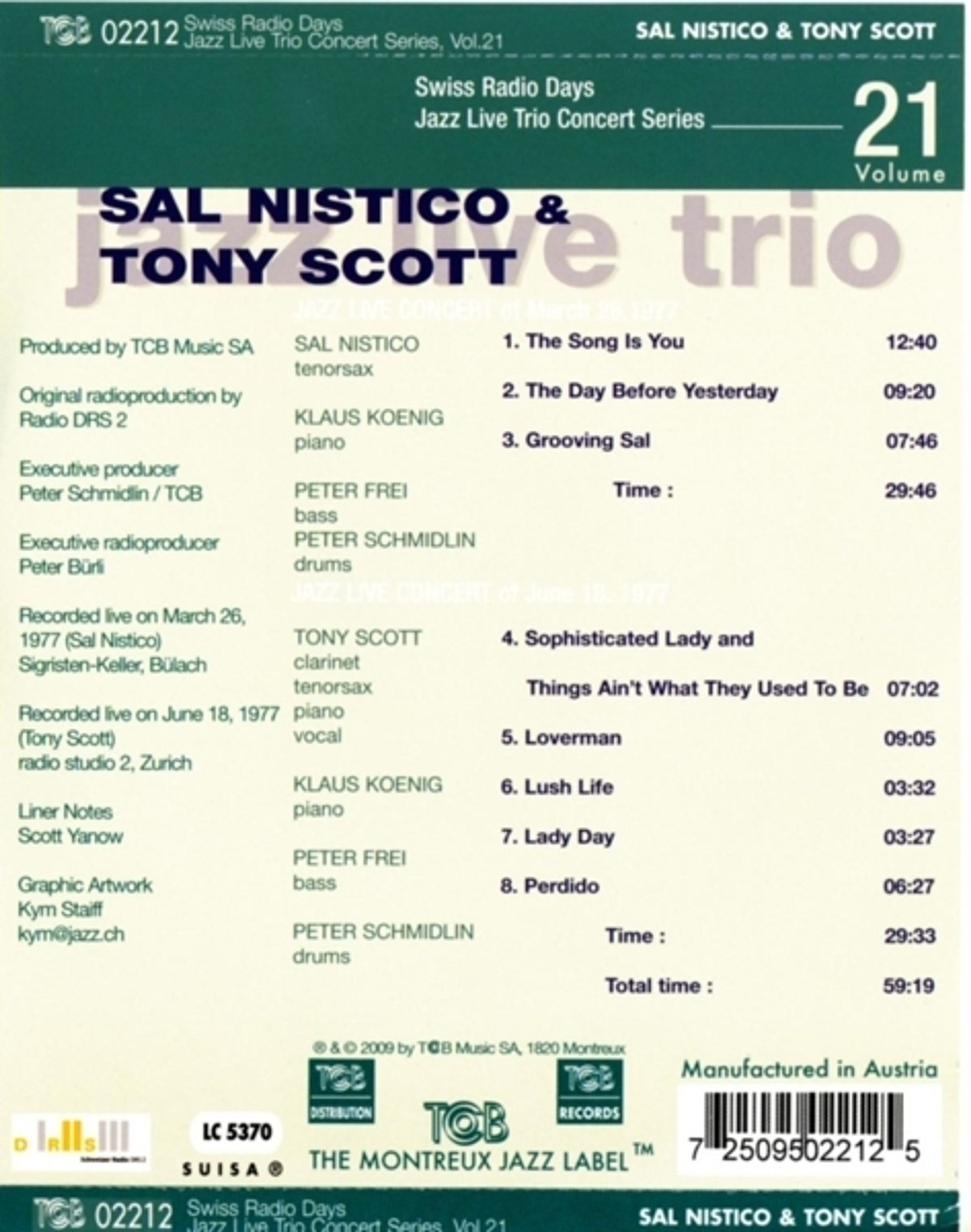 Sal Nistico & Tony Scott: Swiss Radio Days Jazz Series Vol.21 auf CD