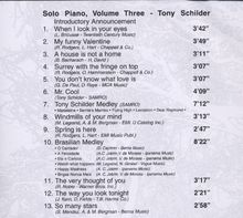 Tony Schilder: Solo Piano (The Tempest Live Series Vol. 3) auf CD