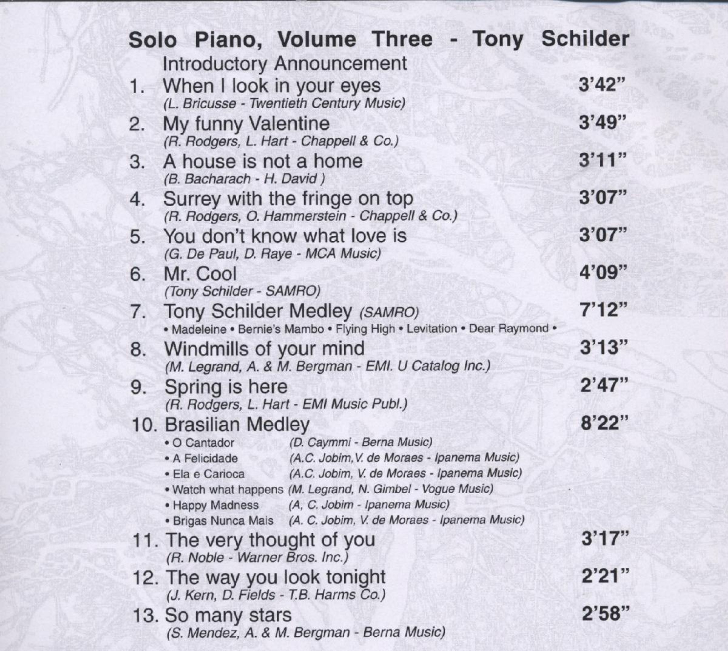7 Tony Schilder medley [Madeleine / Bernie's mambo / Flying high / Levitation / Dear Raymond]