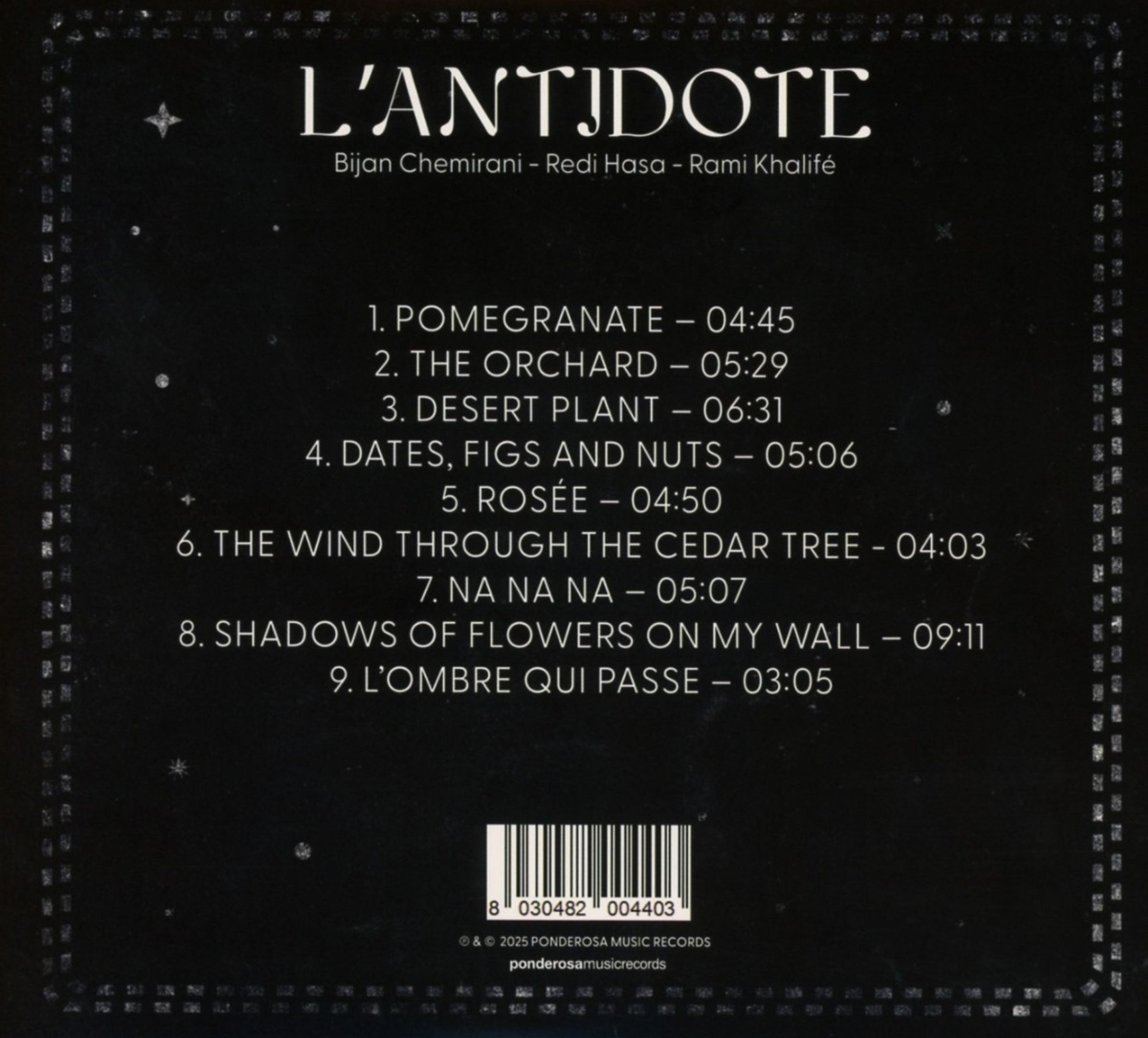 Das Debütalbum von L'Antidote, dem Trio von Bijan Chemirani (Schlagzeug), Redi Hasa (Cello) und Rami Khalife (Klavier).