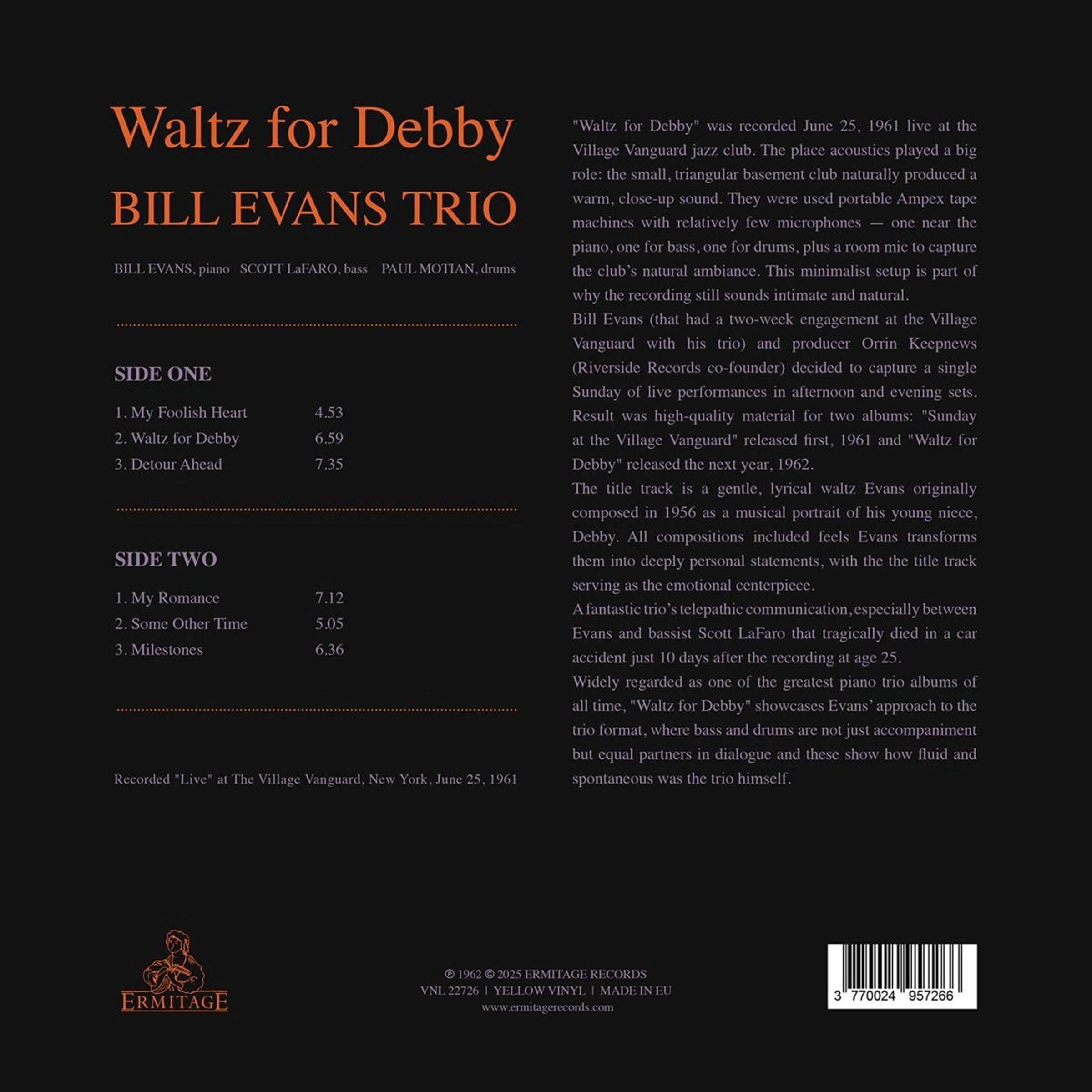 »Waltz For Debby« ist das zweite Album, das während der Aufnahmen im Village Vanguard 1961 entstand. Während der Fokus des ersten Albums Sunday at the Village Vanguard auf Scott LaFaros Soloarbeit liegt, ist »Waltz For Debby« ein Portrait des Trios, das neben Evans und LaFaro aus Schlagzeuger Paul Motian bestand. Evans zeigt hier eine andere Seite als zum Beispiel in seiner Arbeit mit Miles Davis, sein Stil ist deutlich emotionaler. Das Zusammenspiel des Trios ist beeindruckend.