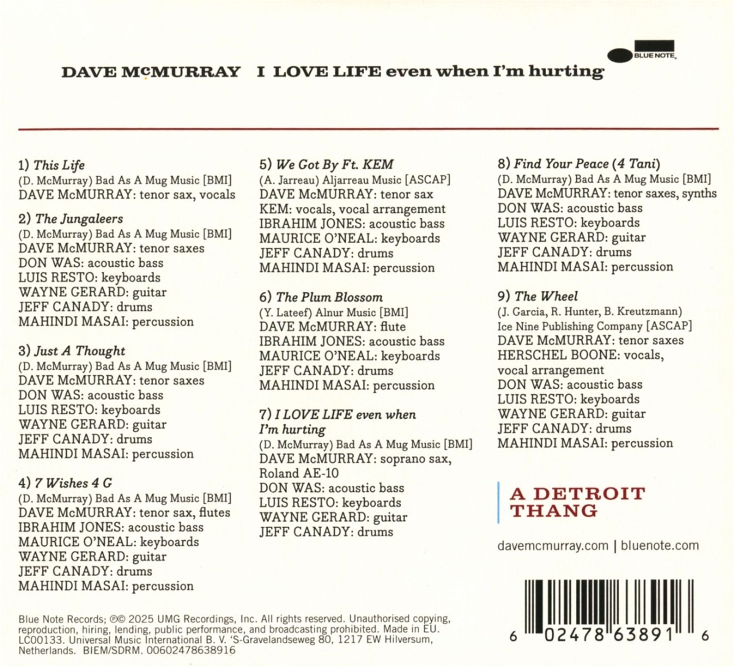 Der bittersüße Titel des neuen Albums von Saxophonist Dave McMurray ist ein Bekenntnis seines unbezwingbaren Lebensgeistes. Es aber ist auch eine Hommage an die Liebe zu seiner Heimatstadt Detroit und die Detroiter Musiker, mit denen er hier zusammengearbeitet hat. Als besondere Gäste sind Blue-Note-Chef Don Was am Bass sowie der Sänger Kem zu hören. Sechs der neun Kompositionen stammen von McMurray, sie strotzen vor gefühlvoller Melodik, emotionaler Unmittelbarkeit und unwiderstehlichen Grooves.