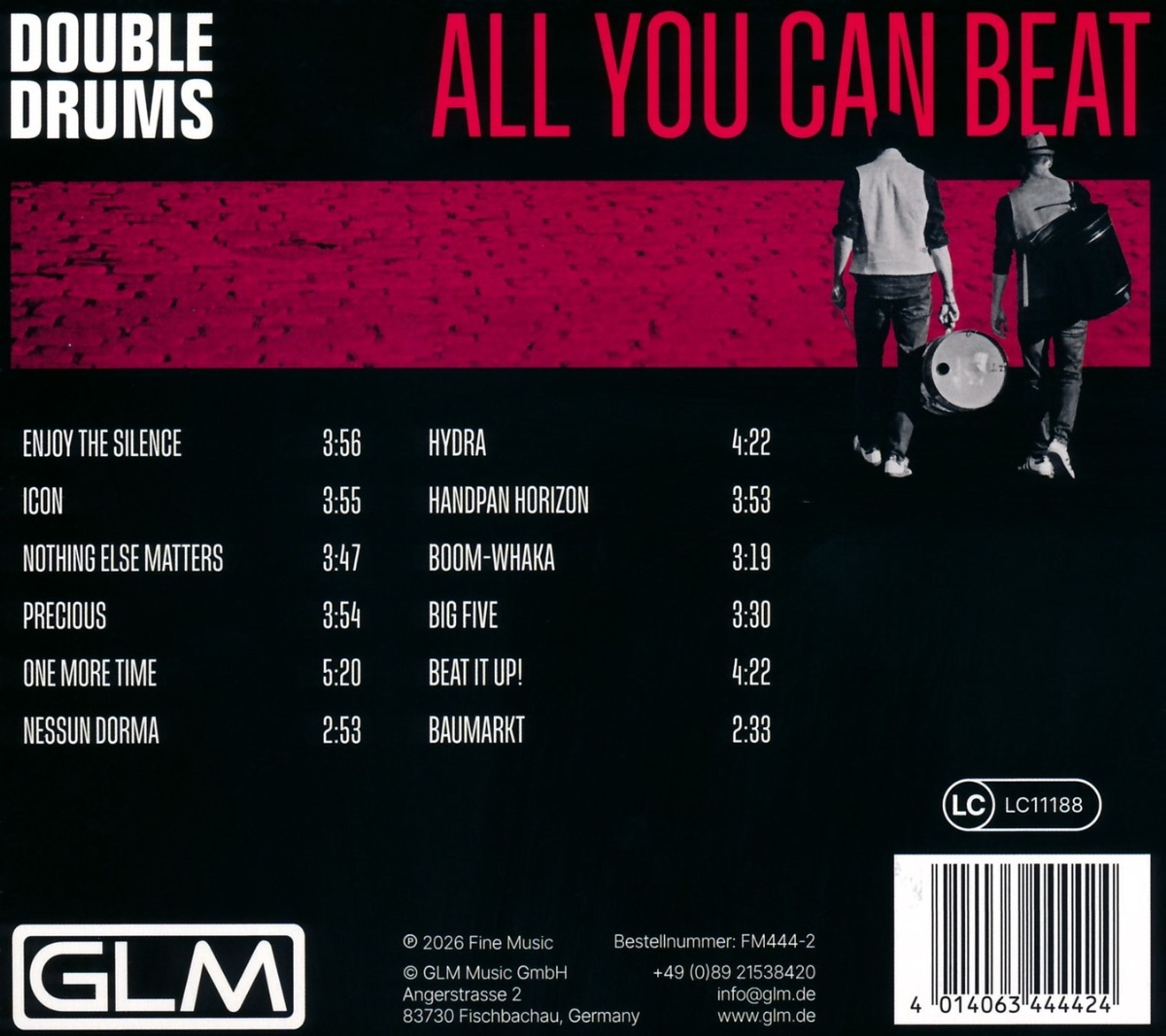 Ihr neues Programm »All You Can Beat« verspricht ein einzigartiges Percussionerlebnis. Das Duo verwandelt alltägliche Gegenstände wie Mülltonnen, Benzinkanister und Verkehrsschilder in mitreißende Beats. Gleichzeitig lassen sie die gesamte Welt der Schlaginstrumente, von Vibraphon bis Marimbaphon, in neuem Licht erstrahlen. Es werden eigene Kompositionen, aber auch Welthits wie »Enjoy the Silence«, »Nothing Else Matters« oder Filmmusik aus »Das Boot« oder »Star Wars« in völlig neuartigen, überraschenden Versionen präsentiert.