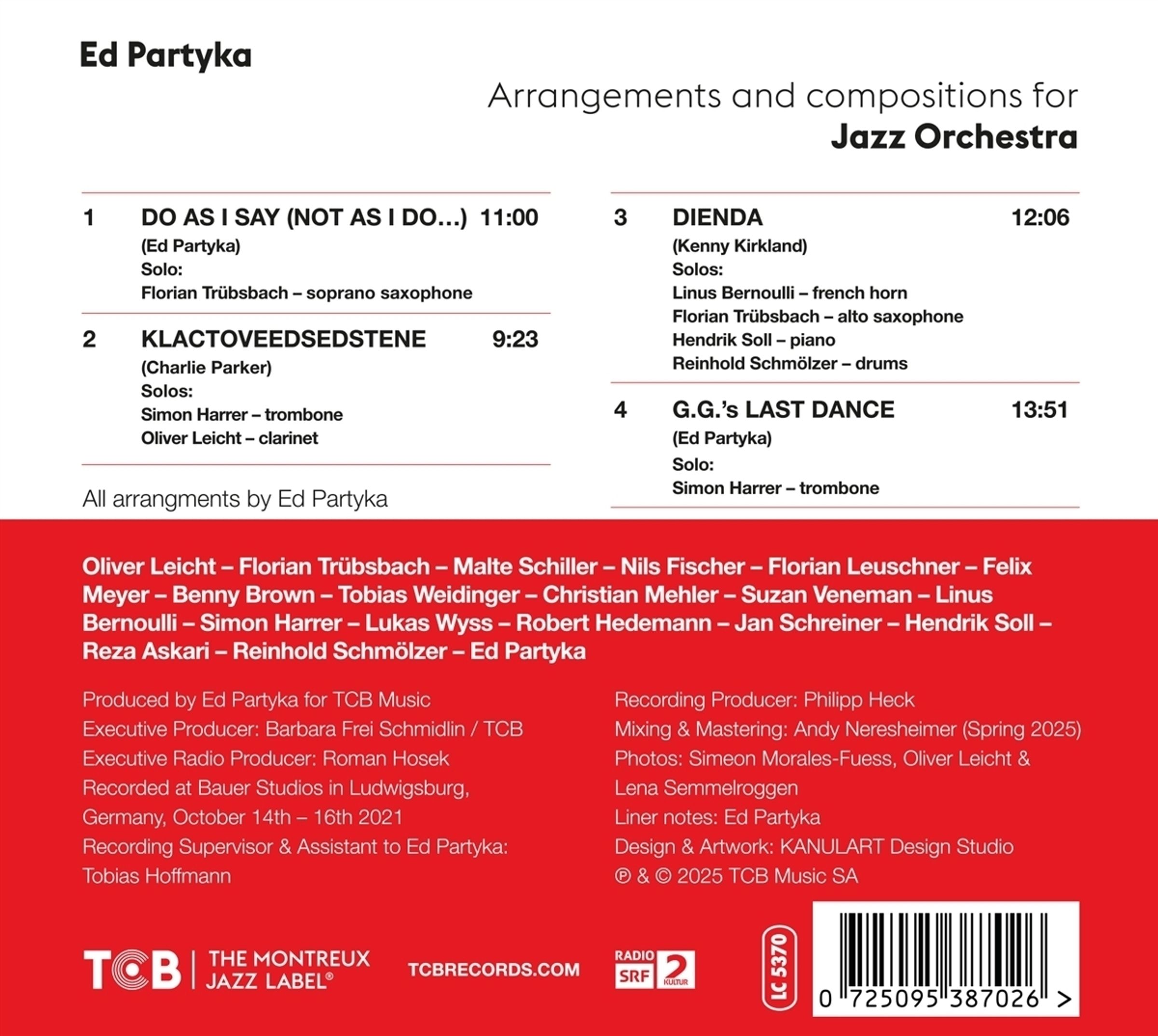 Ed Partykas »Arrangements and Compositions for Jazz Orchestra« ist nicht nur Eds Vision von sich selbst im Jahr 2025, sondern auch eine Hommage an seinen wichtigsten Inspirator und Mentor Bob Brookmeyer. Die vier Kompositionen und Arrangements auf diesem Album zeichnen sich durch eine Vielzahl von erweiterten Ensemblepassagen aus, die von intimen Kammermusikmomenten bis zu dramatischen orchestralen Höhepunkten reichen, wobei jedes Mitglied des Orchesters eine wichtige Rolle in der Entwicklung der Musik spielt. Die Präsentation ist würdevoll und wunderbar konzipiert.