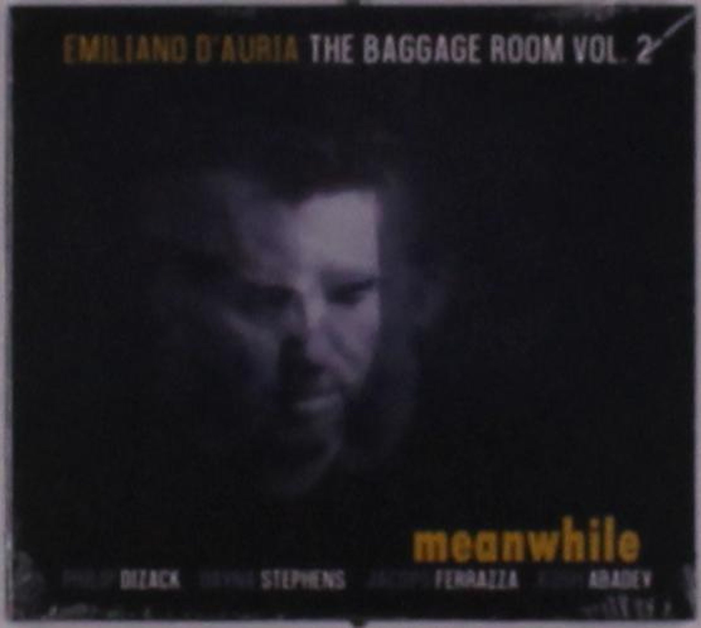 Text: "EMILIANO D'AURIA THE BAGGAGE ROOM VOL. 2", "meanwhile". Verschwommenes Gesicht eines Mannes im Hintergrund., CD