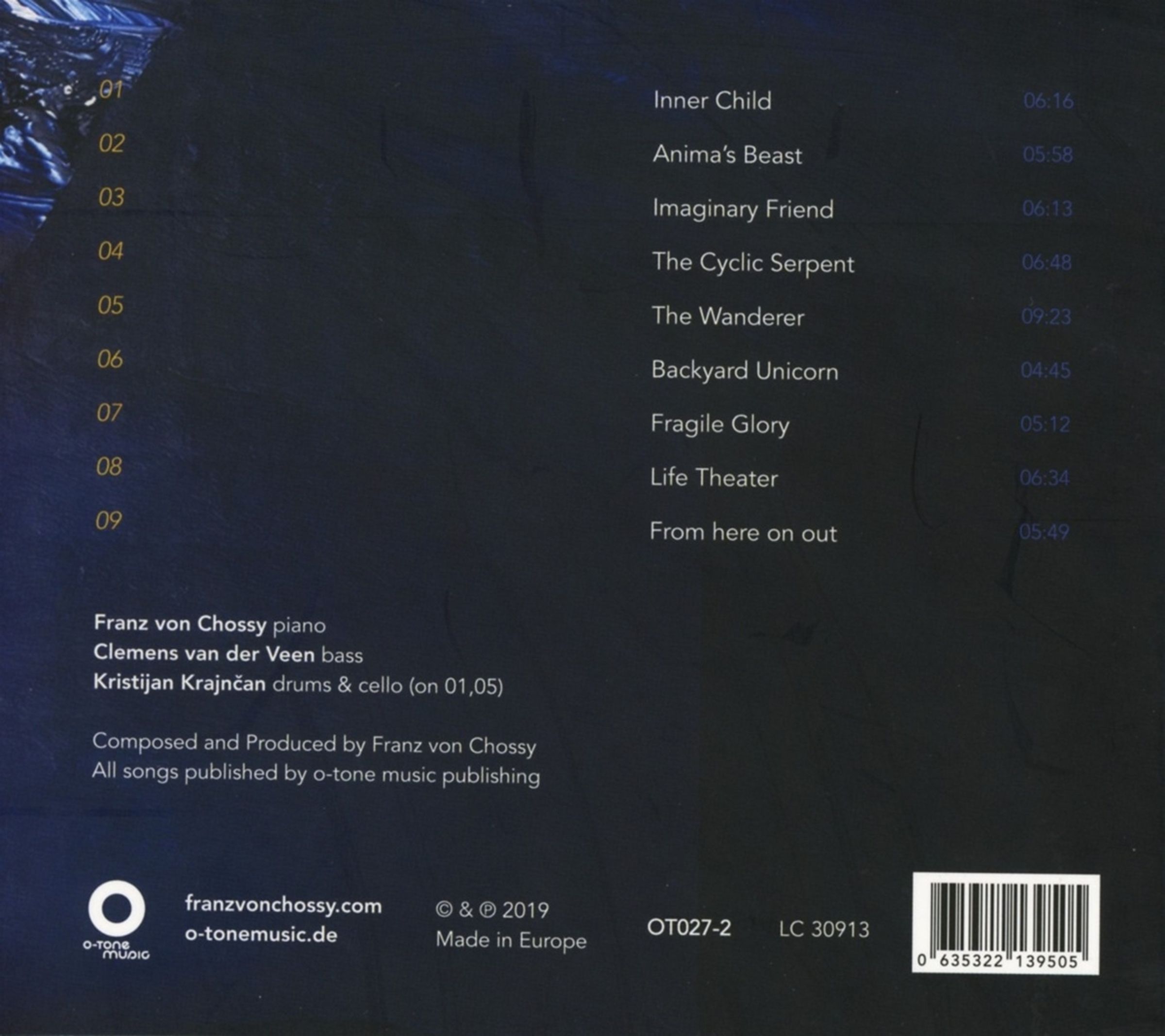 Auf diesem neuen Trio-Album gelingt es Franz von Chossy auf clevere Weise, die musikalischen Möglichkeiten des Quintetts in die Trio-Form zu überführen. Es gibt nur wenige Komponisten, die so geschickt mit Klängen spielen und die Qualitäten der Instrumentalisten, auch sich selbst, so gut nutzen können. Sein klassischer Hintergrund und viele Begegnungen mit unterschiedlichen Musikkulturen verstärken mehr denn je die große Wirkung seiner Musik.