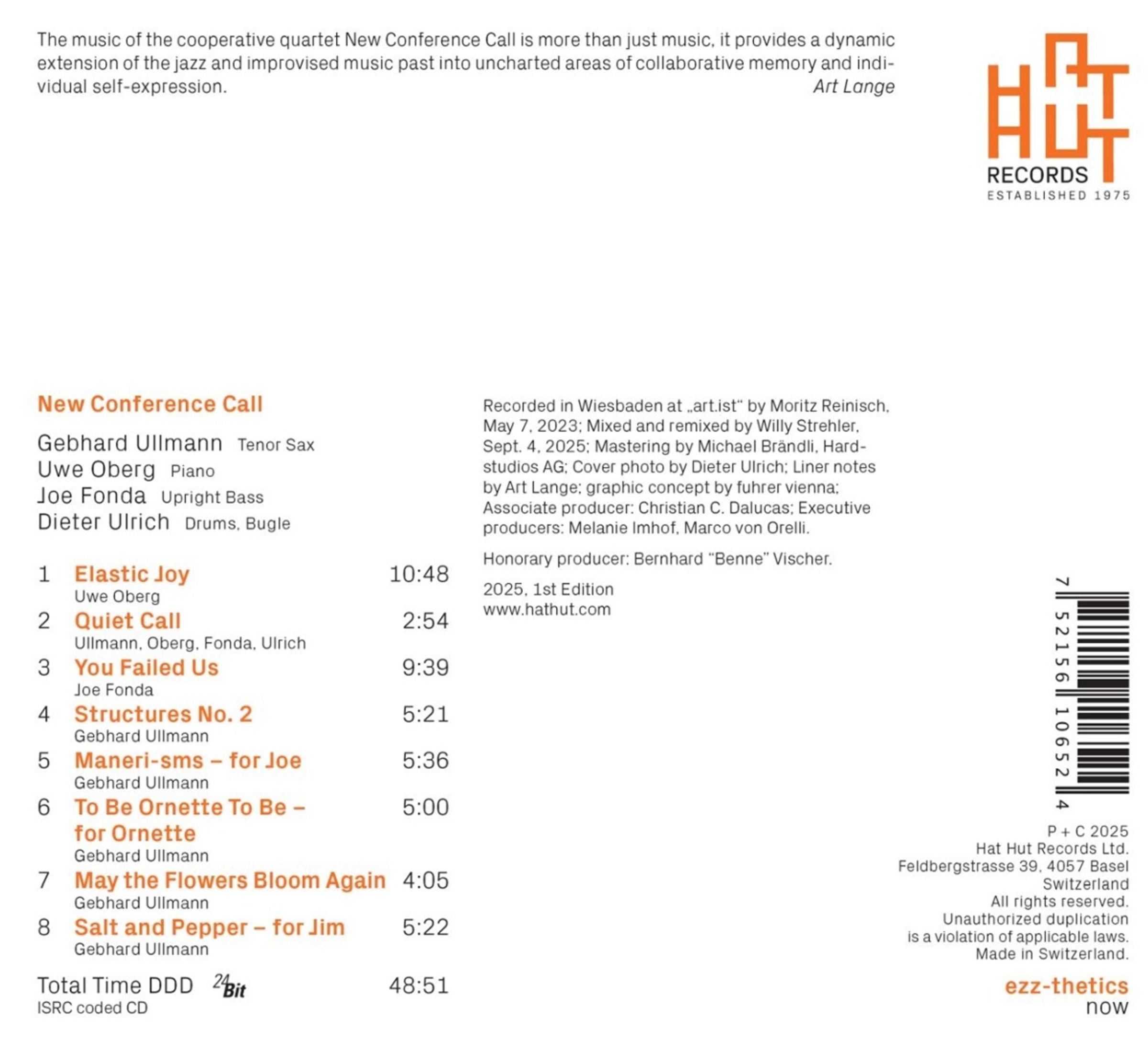 Die Musik des kooperativen Quartetts auf New Conference Call ist mehr als nur Musik, sie bietet eine dynamische Erweiterung der Vergangenheit des Jazz und der improvisierten Musik in unbekannte Bereiche der kollaborativen Erinnerung und individuellen Selbstdarstellung. (Art Lange)