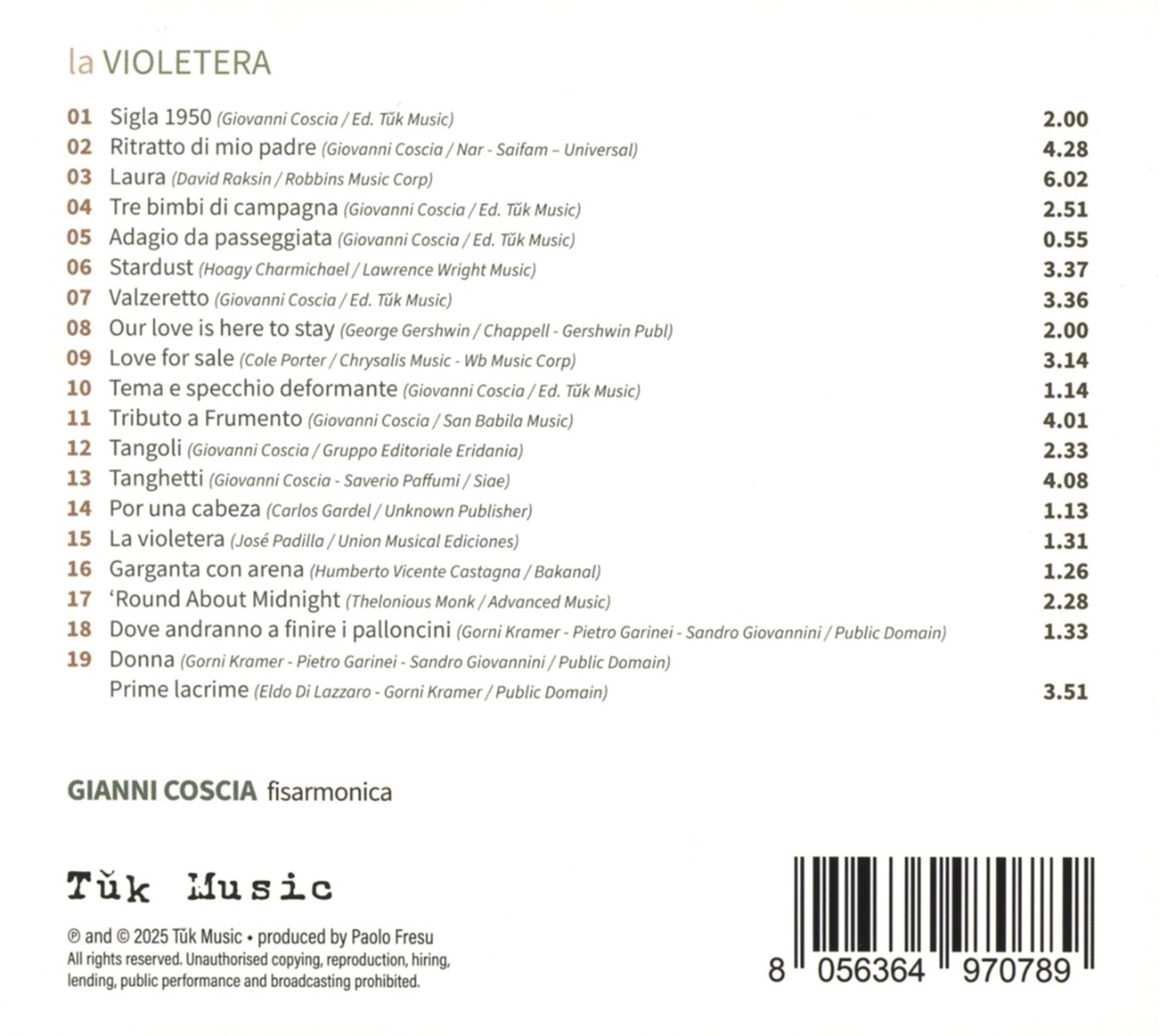 Gianni Coscia: La Violetera auf CD