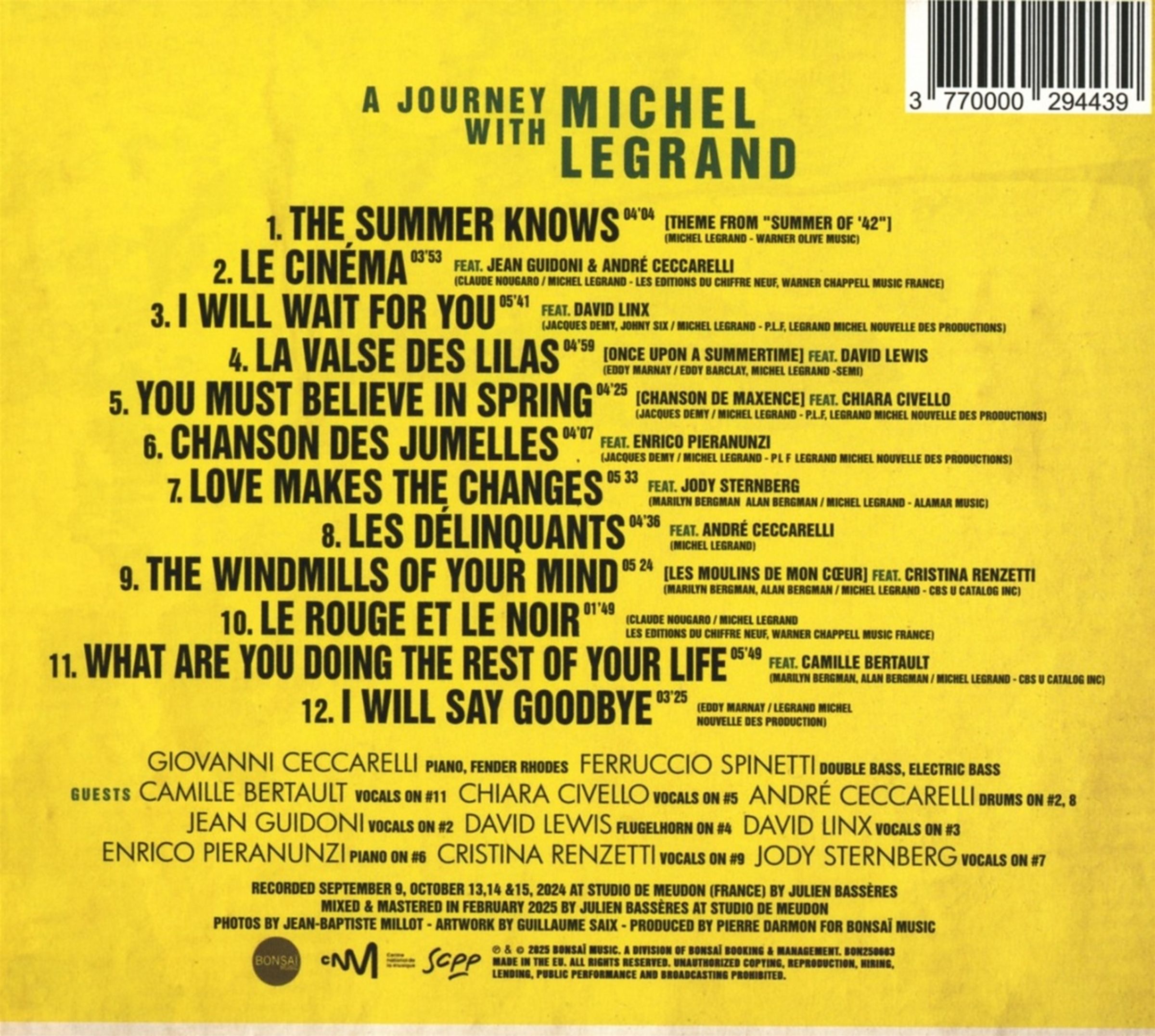 Nachdem sie sich bereits mit dem Werk von Ennio Morricone beschäftigt haben (das Album »More Morricone« im Jahr 2020), widmen sich Giovanni Ceccarelli und Kontrabassist Ferruccio Spinetti nun einem weiteren großen Komponisten: Michel Legrand. Ihr neues Projekt mit dem Titel »Le grand Michel – A journey with Michel Legrand« erschließt ein breites Repertoire, das sowohl Werke aus den Filmen von Jacques Demy als auch Songs umfasst, die für Claude Nougaro, Ray Charles und Hollywood komponiert wurden.