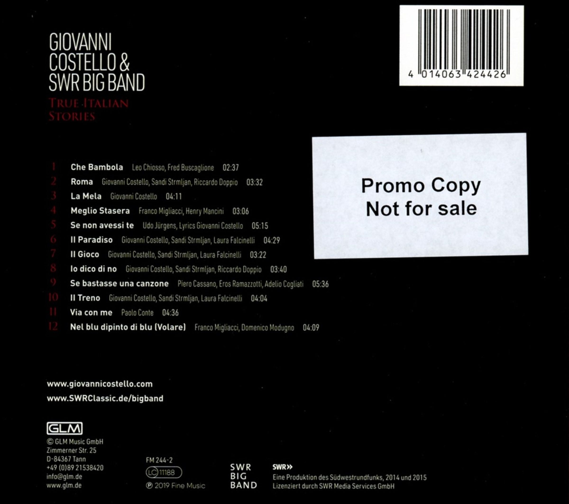 Er hat viel in seinem Leben erlebt und gesehen, um »True Italian Stories« glaubwürdig interpretieren zu können. Für all das hat Costello den ganz großen Auftritt gewählt: eine Kooperation mit der SWR Big Band. Mit dem legendären deutschen Jazzorchester hat er erstmals 2014 zusammengearbeitet und die gemeinsame Wellenlänge war derart offensichtlich, dass man diese Zusammenarbeit 2016 und 2017 vertiefte.