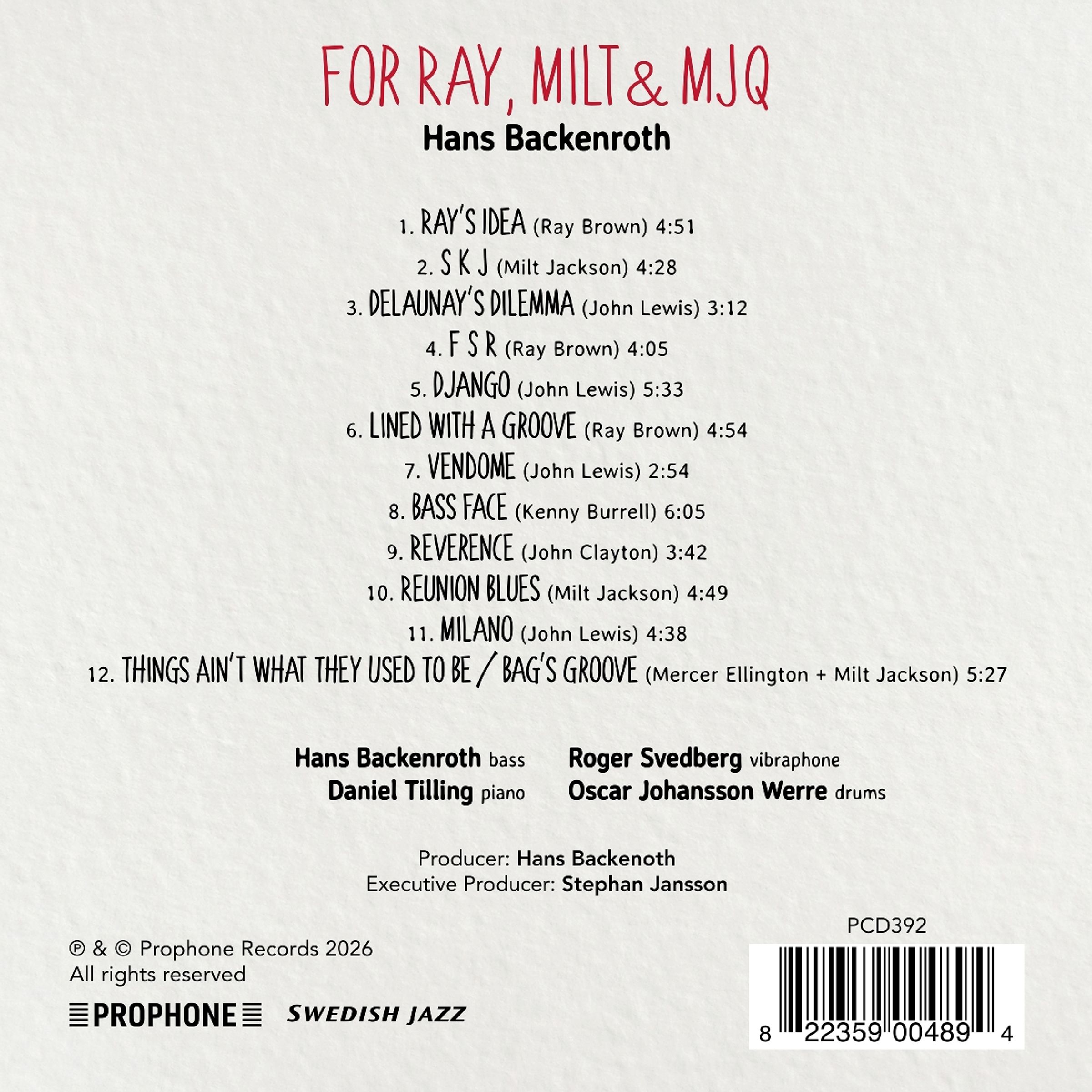 Hans Backenroth: For Ray, Milt & MJQ auf CD