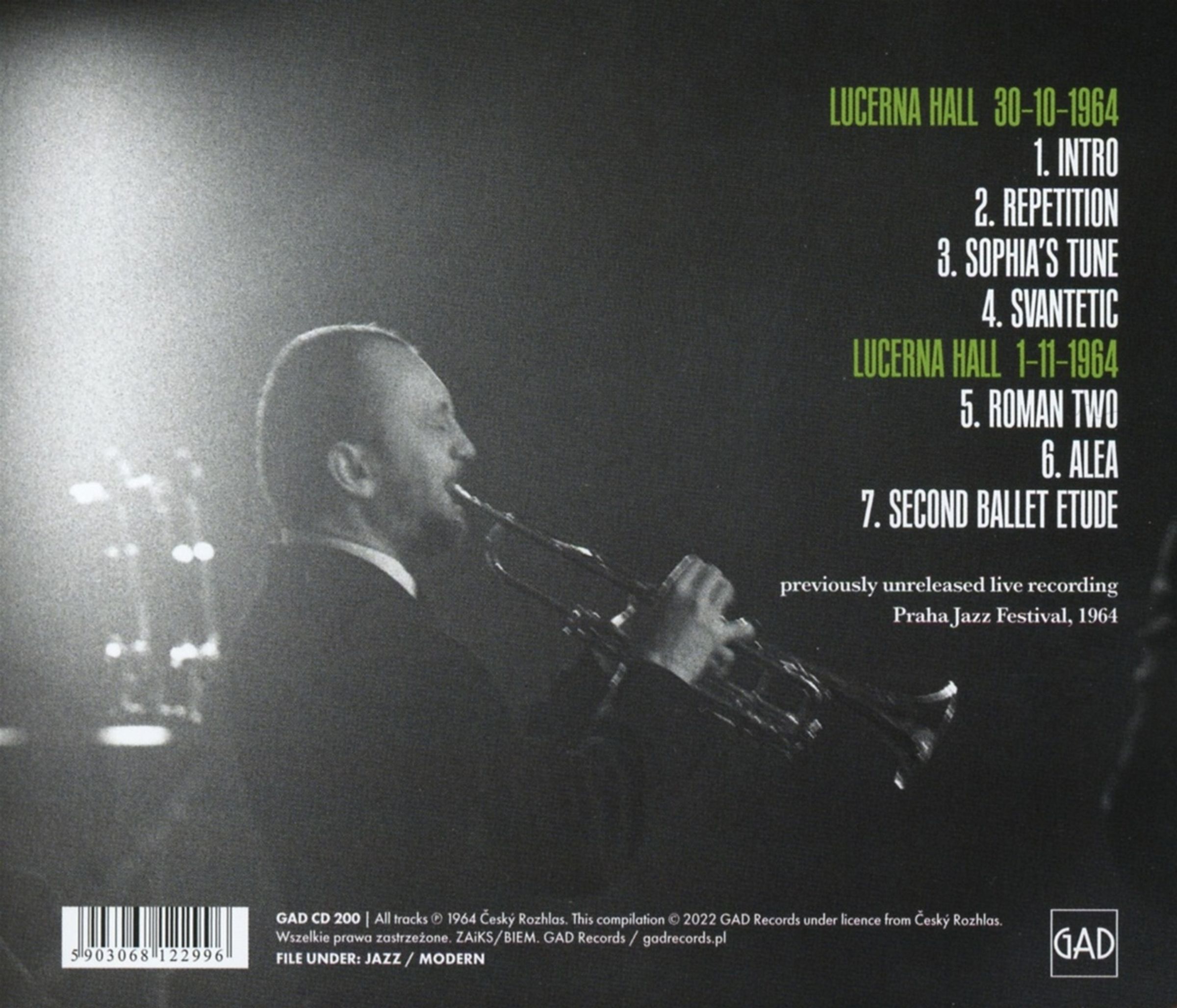 Die bisher unveröffentlichte Live-Aufnahme des Krzysztof Komeda Quintetts auf dem ersten Jazzfestival in Prag 1964 erscheint als CD auf GAD Music.