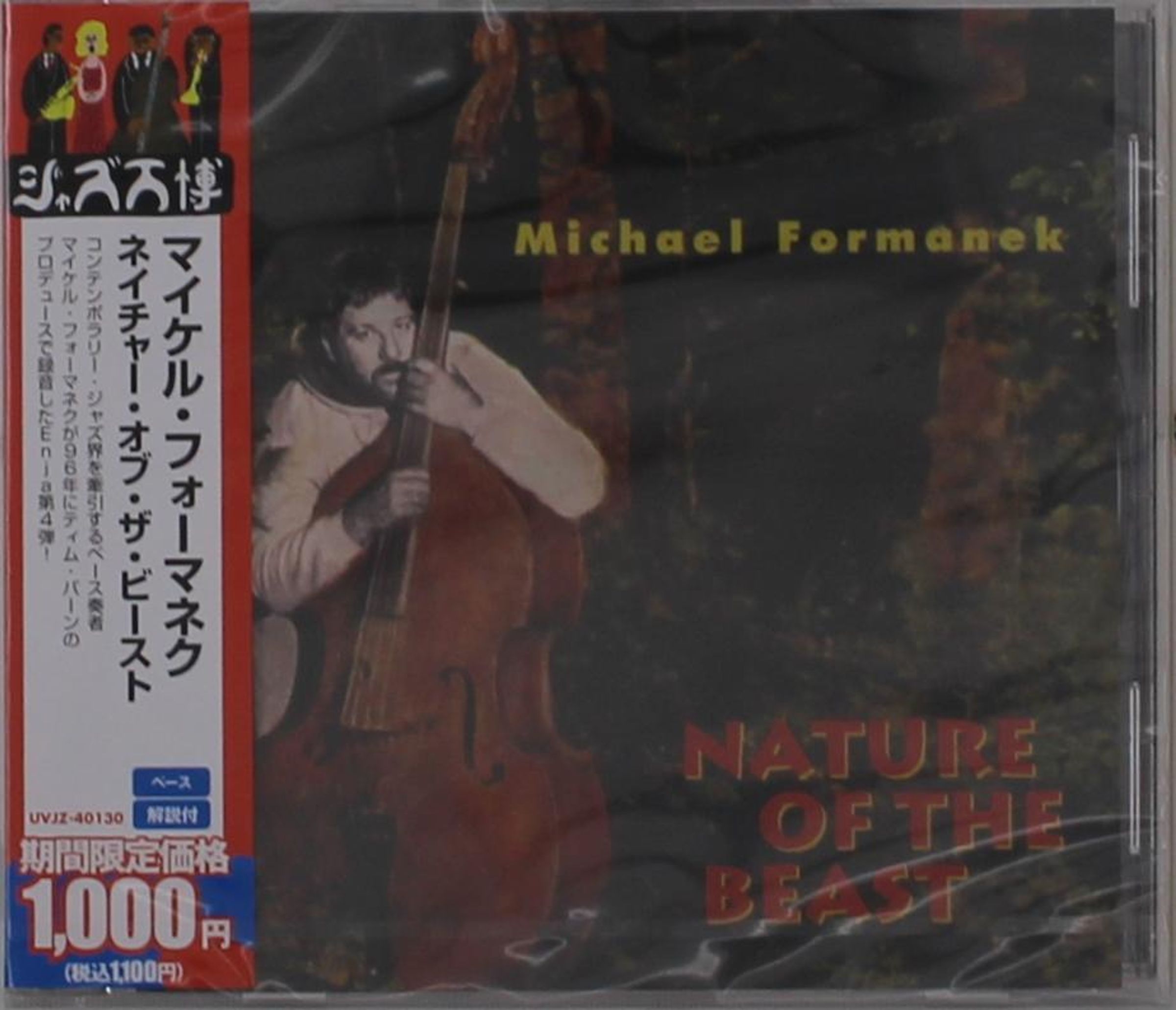 "Michael Formanek", "NATURE OF THE BEAST". Illustration zeigt Musiker mit Kontrabass, samt japanischen Texten und einem Preisetikett., CD