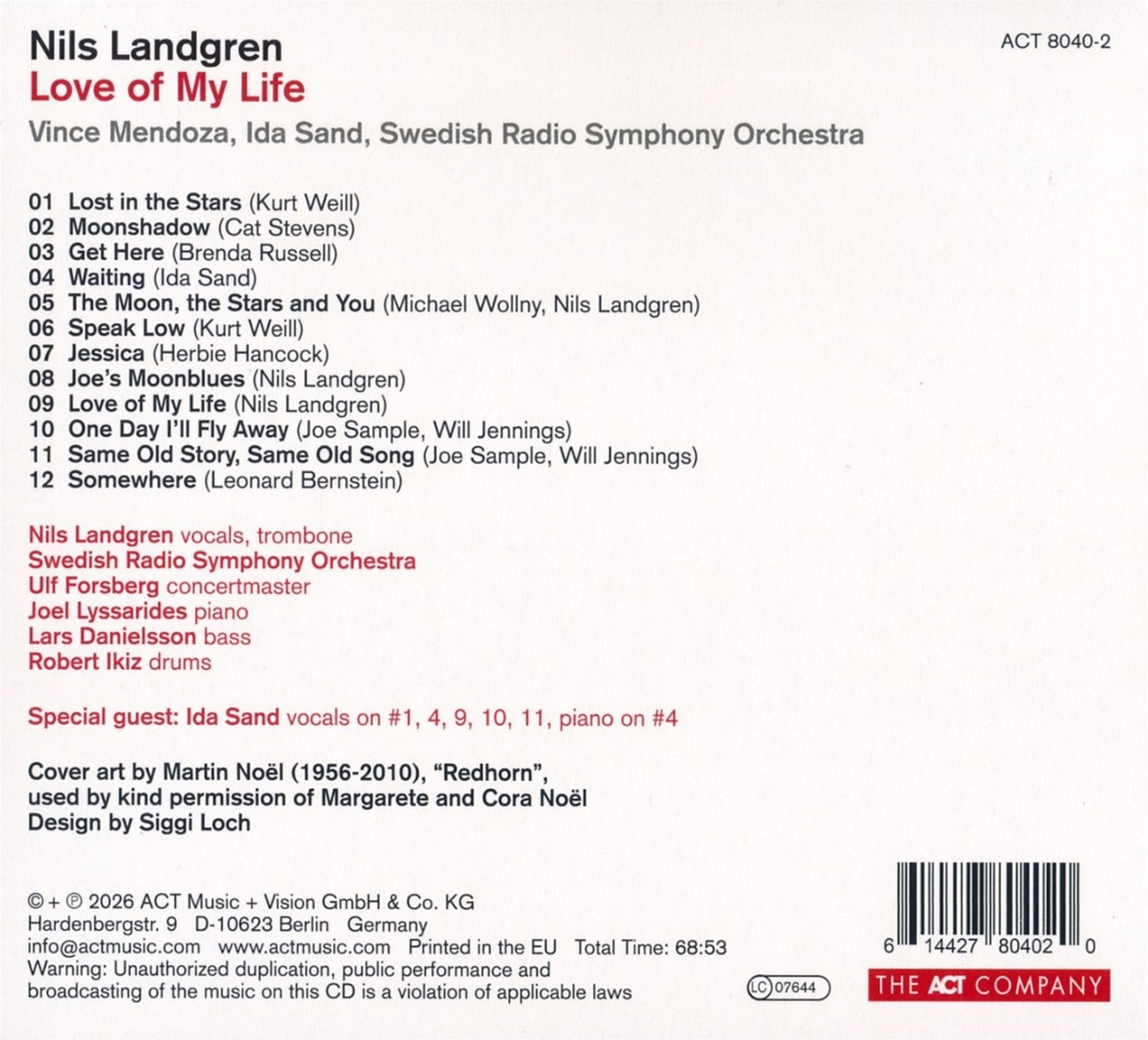 Wenn man rund um seinen 70. Geburtstag am 15. Februar 2026 über Nils Landgren spricht, tut man sich schwer, nur eine Eigenschaft hervorzuheben – es braucht schon den Versuch einer Aufzählung: Einer der erfolgreichsten europäischen Jazzmusiker der letzten Jahrzehnte. Posaunist, Sänger, Festivalleiter, Mentor, Förderer, Brückenbauer. Träger des Bundesverdienstkreuzes, des Sir George Martin Music Awards und der höchsten Orden für Kunst und Kultur des schwedischen Königshauses. Unermüdlicher Arbeiter mit zu Spitzenzeiten 150-200 Konzerten pro Jahr. Und, vielleicht am wichtigsten: überzeugter Optimist, Herzensmensch. Alles, was Nils Landgren macht, hat irgendwie mit Liebe zu tun: zur Musik, zu seinem Instrument, der roten Posaune, zu den Menschen auf und vor der Bühne. Und zu seiner Frau, der Schauspielerin Beatrice Järås, mit der er seit 48 Jahren verheiratet ist. Und so gibt es für sein neues Album auch keinen treffenderen Titel als »Love of My Life«.
