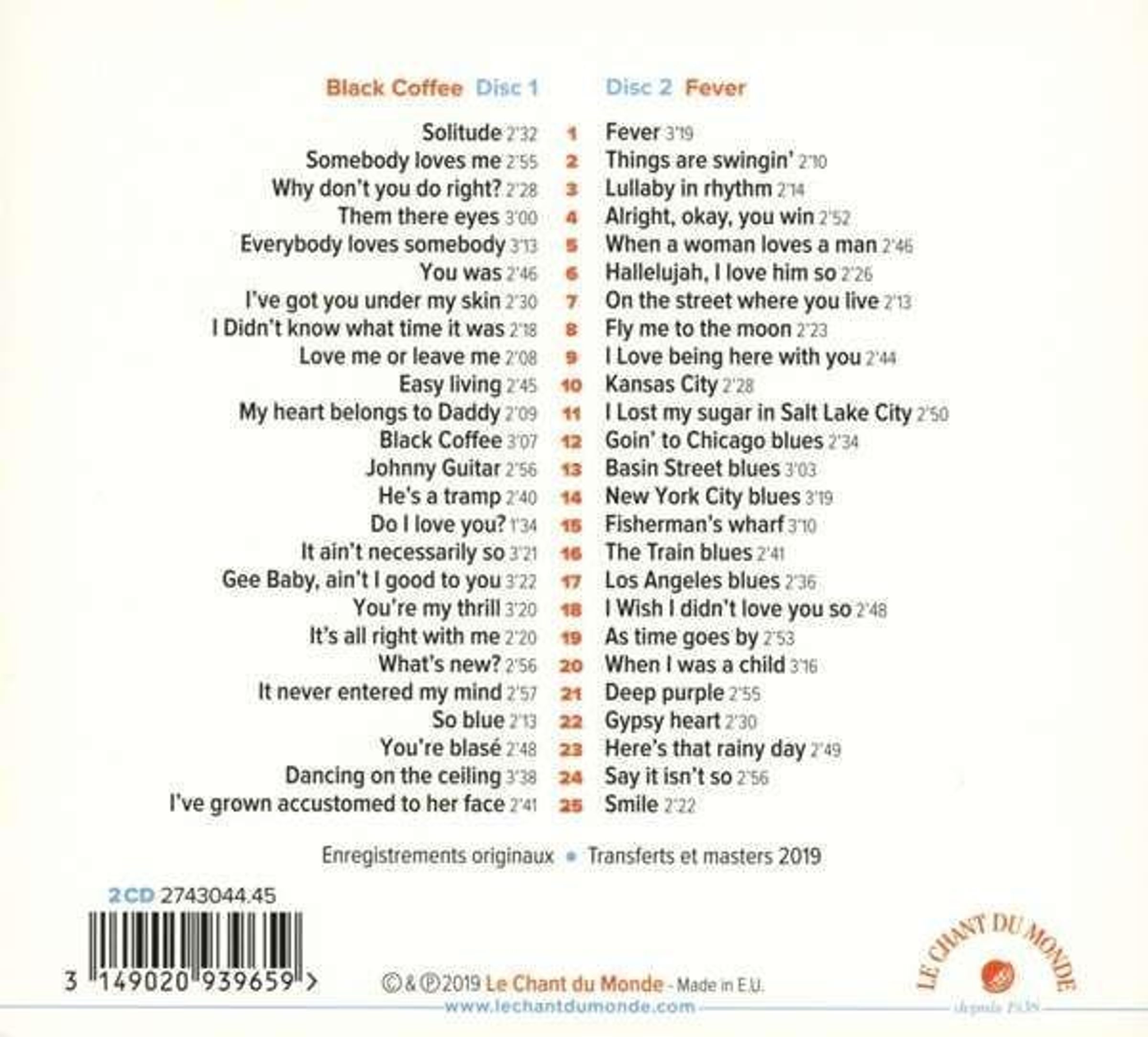 Peggy Lee: Black Coffee / Fever auf 2 CDs