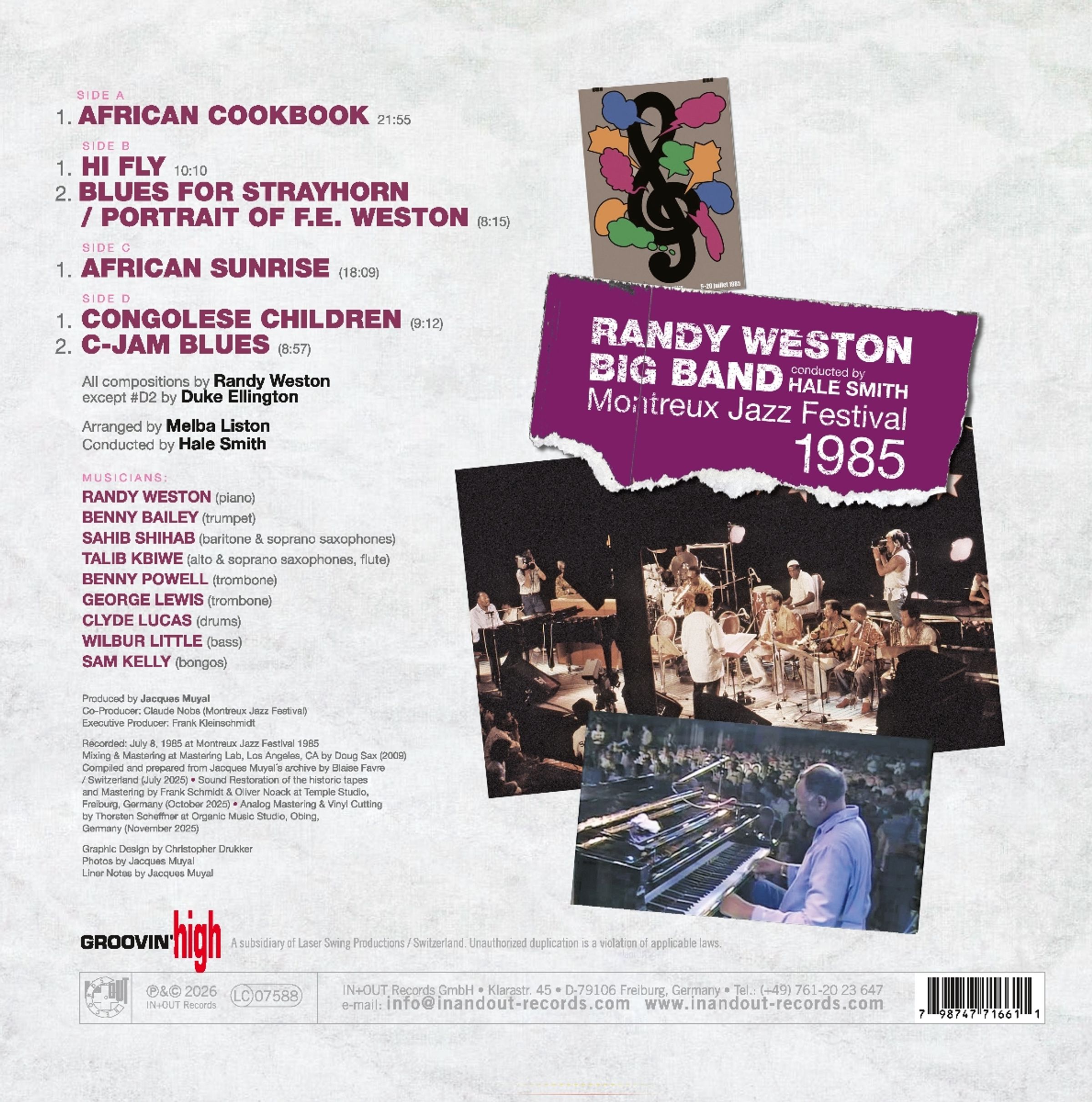 "Randy Weston Big Band, Montreux Jazz Festival 1985. Foto von Musiker und Konzertszene, lila Hintergrund.", 2 LPs